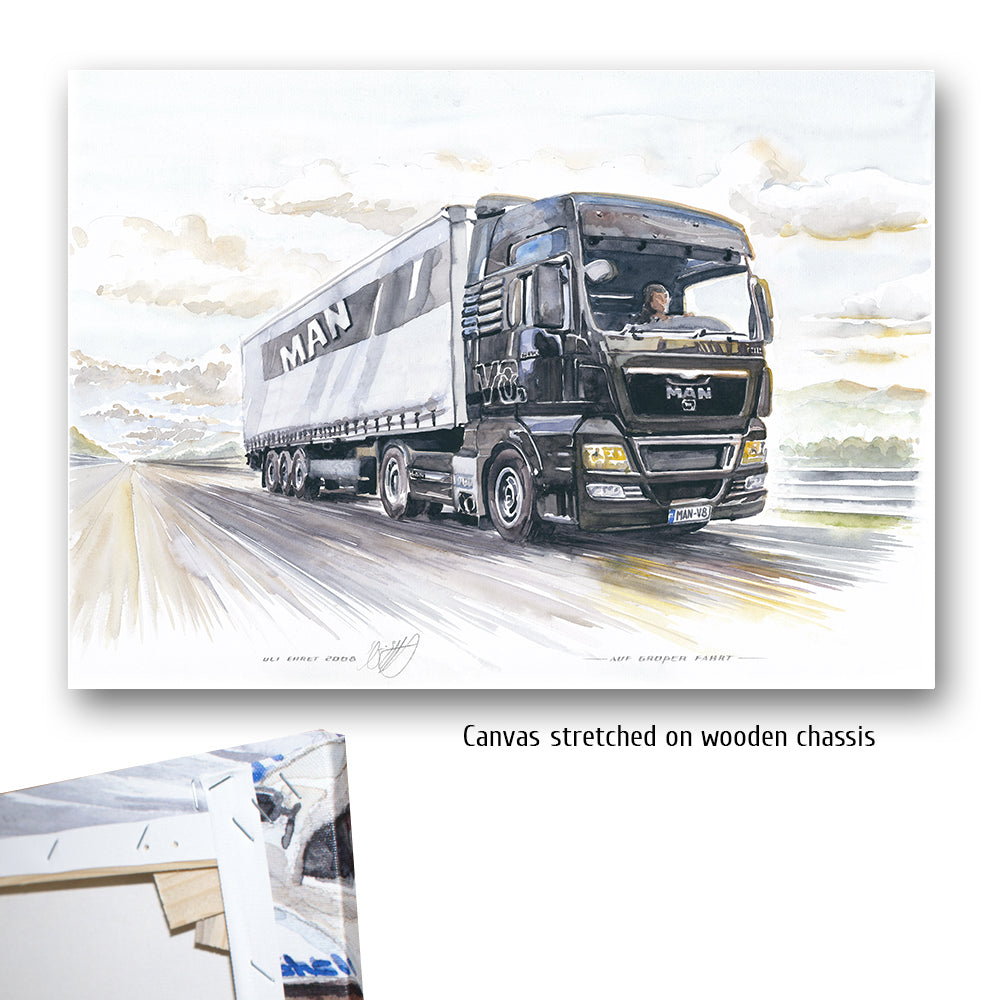 Auf Anfrage liefern wir die Leinwand-Kunstdrucke auch gerollt - nicht auf dem Holzkeilrahmen, und wir können sie auch auf 4 cm starke Holzkeilrahmen aufziehen lassen. Ihre Anfrage dazu senden Sie bitte direkt an: info@ehretdesign.de per Mail.