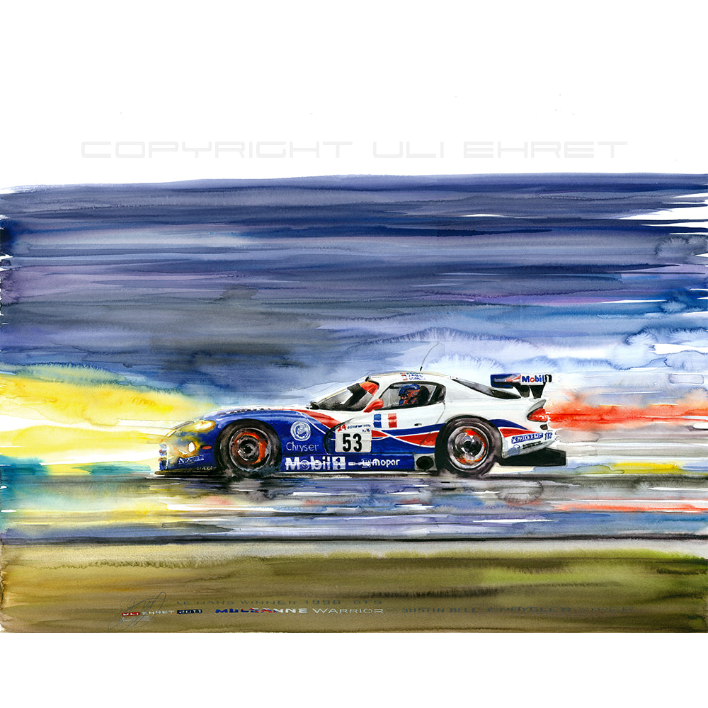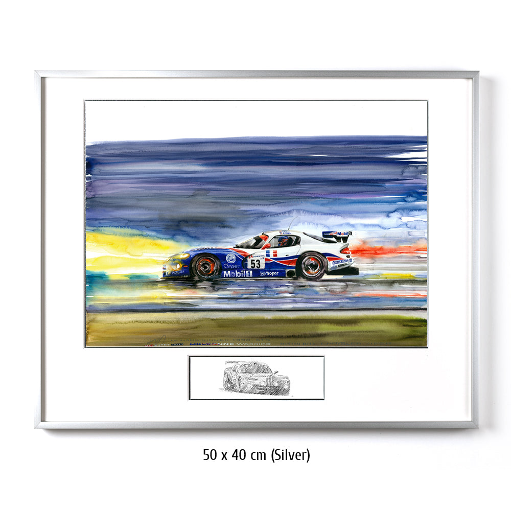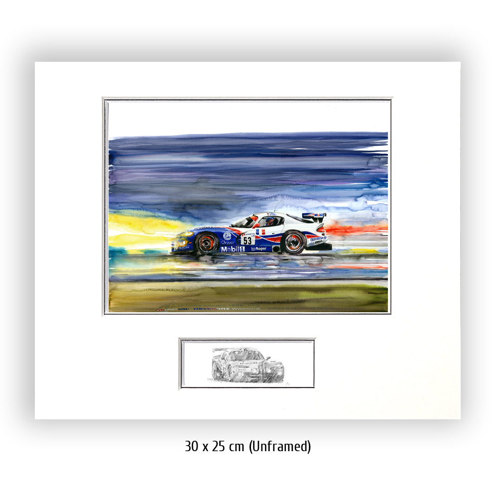 Orecas unschlagbares Chrysler Viper Team erzielte drei aufeinanderfolgende GT2/GTS Klassensiege in Le Mans von 1998 bis ins Jahr 2000. Hier sieht man Justin Bell auf dem Weg zum ersten dieser Siege auf seinem amerikanischen “Muscle Car” mit dem gigantischen 8 Liter Motor beim Anbremsen zur Mulsanne-Kurve.