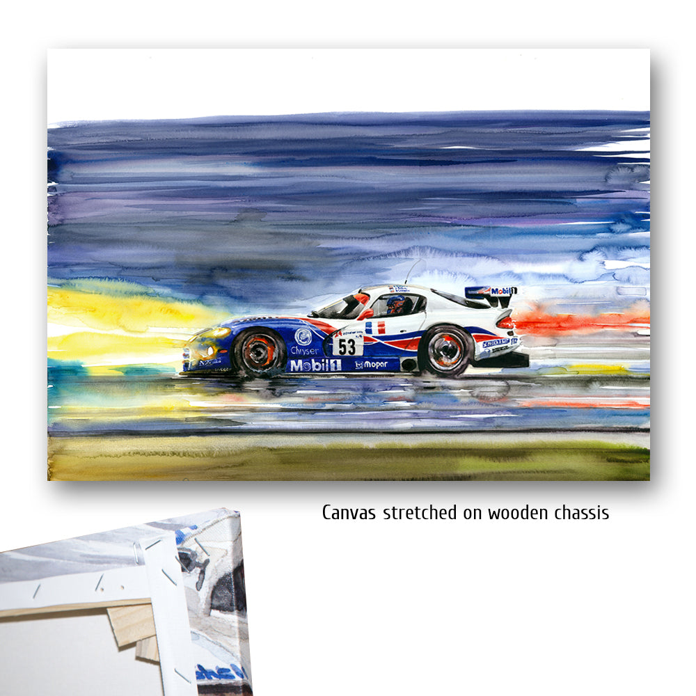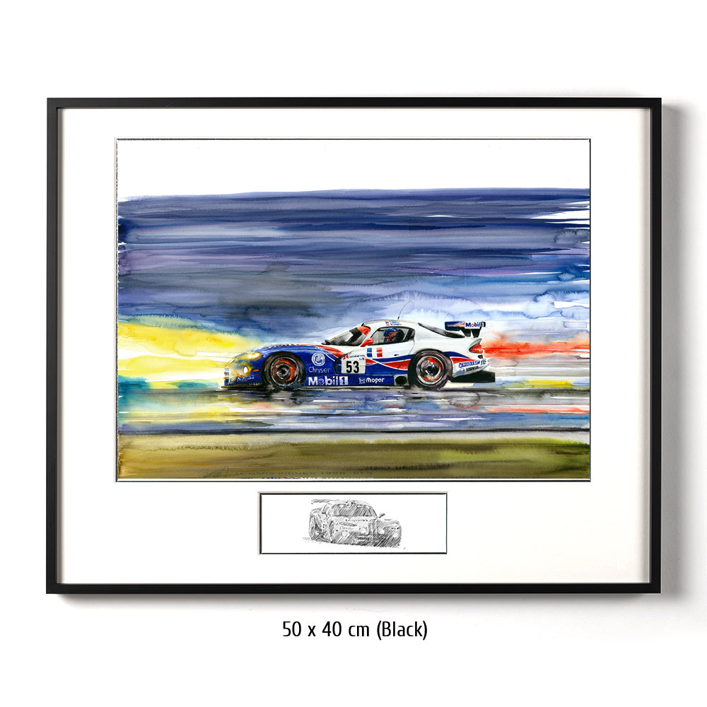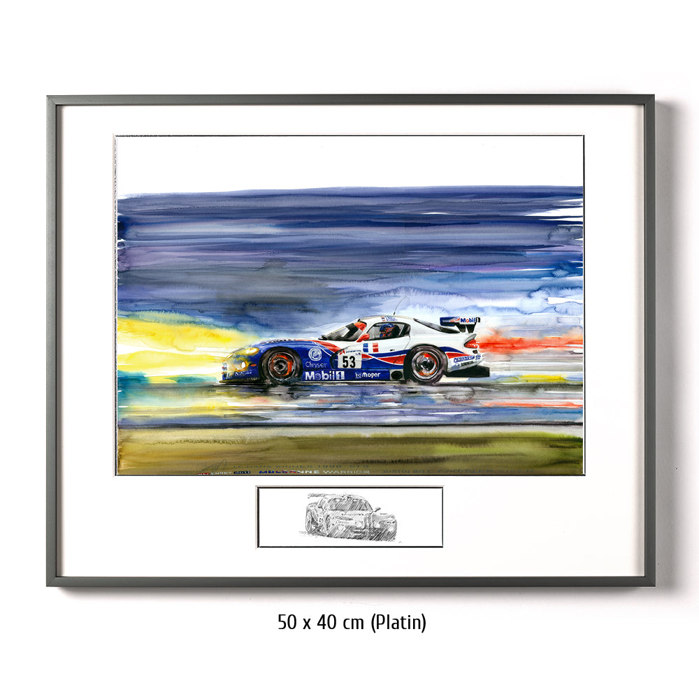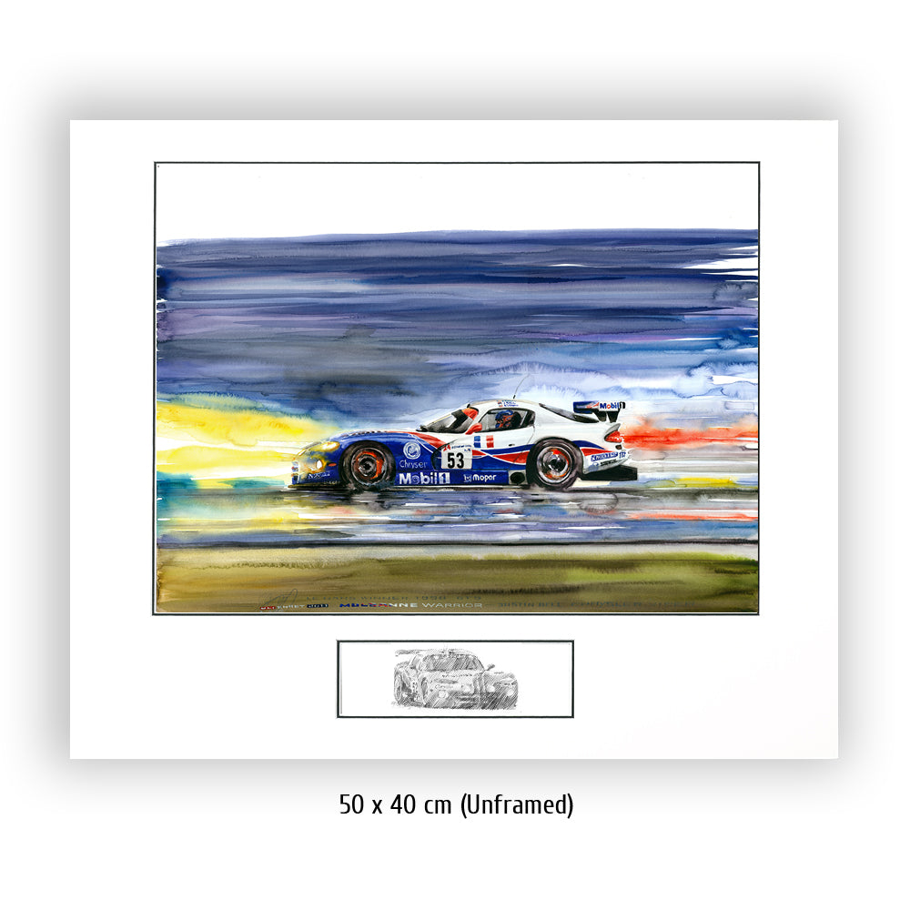 Orecas unschlagbares Chrysler Viper Team erzielte drei aufeinanderfolgende GT2/GTS Klassensiege in Le Mans von 1998 bis ins Jahr 2000. Hier sieht man Justin Bell auf dem Weg zum ersten dieser Siege auf seinem amerikanischen “Muscle Car” mit dem gigantischen 8 Liter Motor beim Anbremsen zur Mulsanne-Kurve.