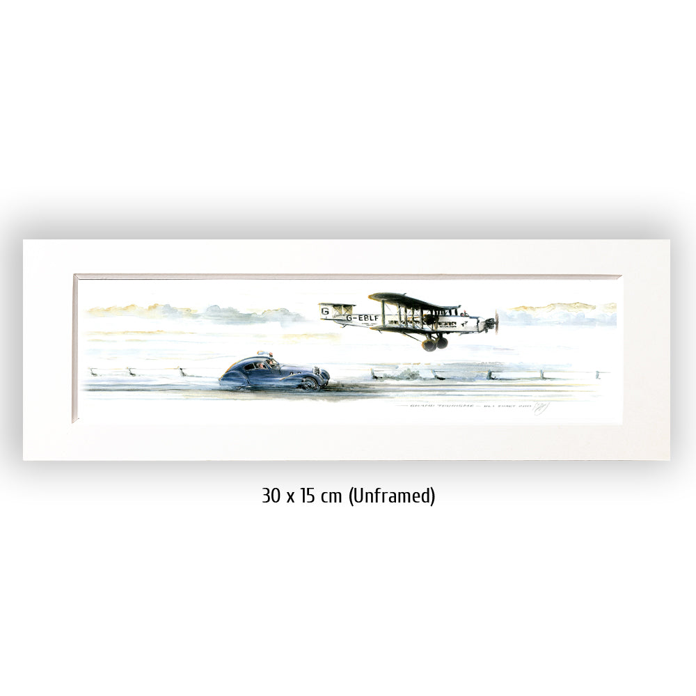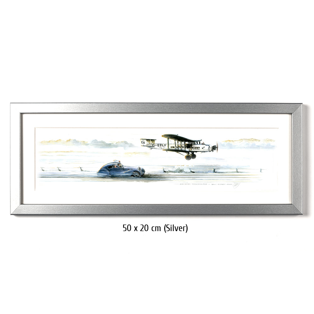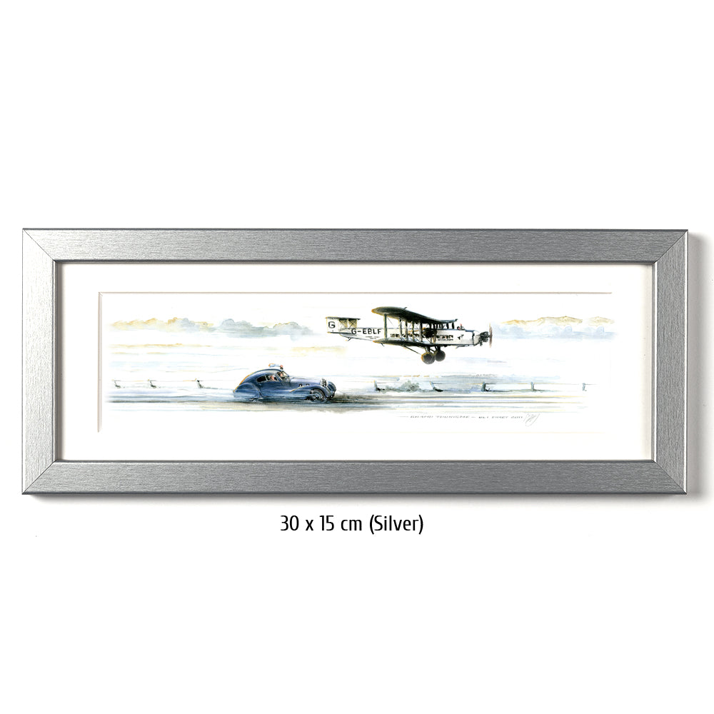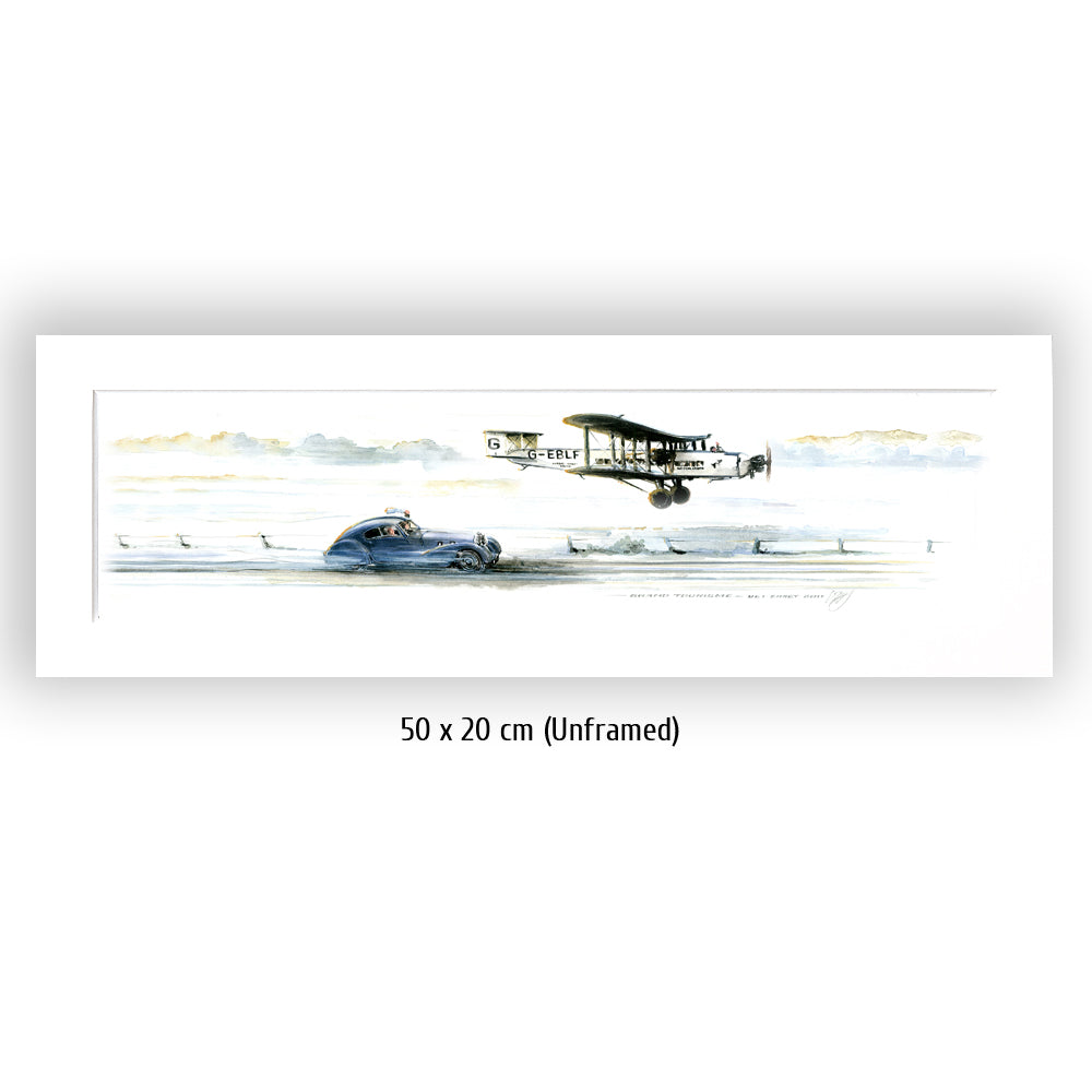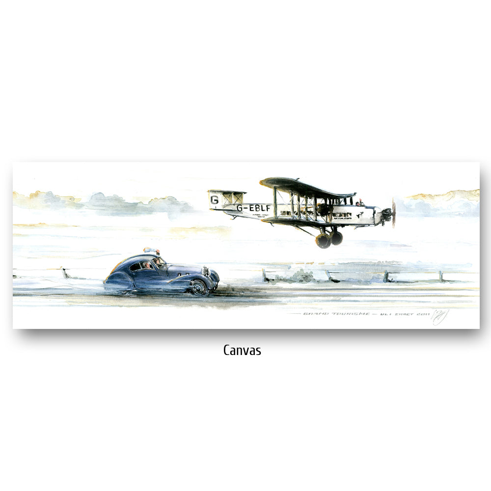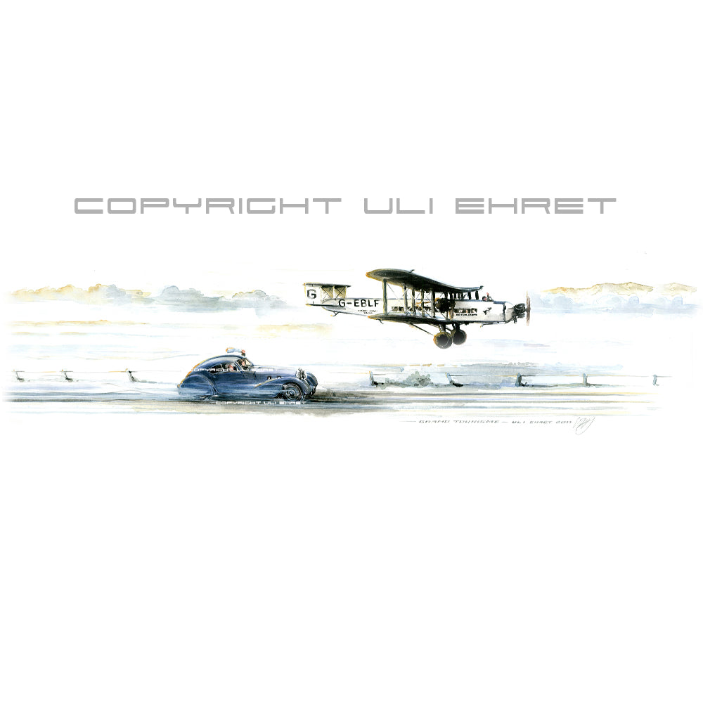 Eine fiktive Szene, wie sie aber 1927 möglich gewesen wäre. Der Pilot der Argosy grüßt den Bugatti-Fahrer kurz vor seiner Landung.