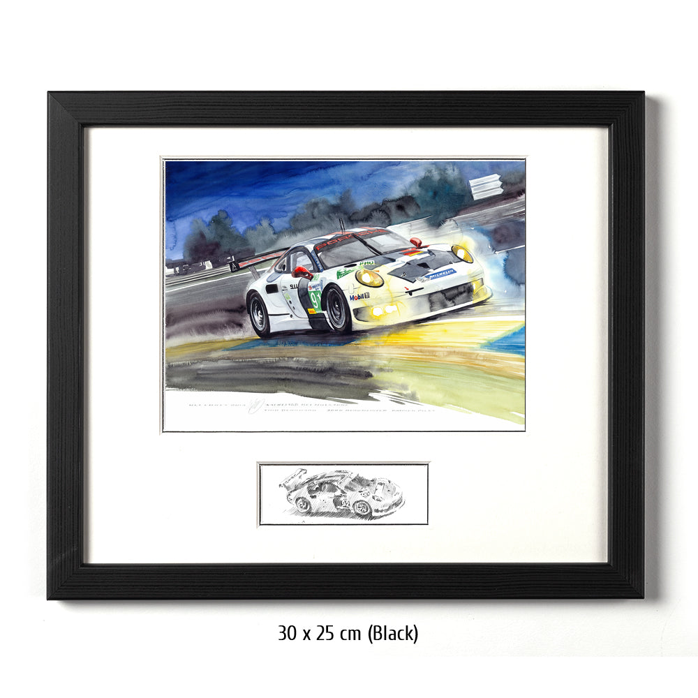 Im Jahr 2013 feierte Porsche den 50. Geburtstag des 911er Porsches mit dem Einsatz zweier stark verbesserter 991 RSR durch das Team Manthey in Le Mans. Die Startnummer 91 wurde von den erfahrenen Piloten Timo Bernhard, Jörg Bergmeister und Patrick Pilet gefahren. Hier sieht man sie bei der erfolgreichen Nachtjagd. Im Morgengrauen machten sie dann zahlreiche Plätze gut, um am Ende den ersten und zweiten Platz in ihrer Klasse zu feiern.