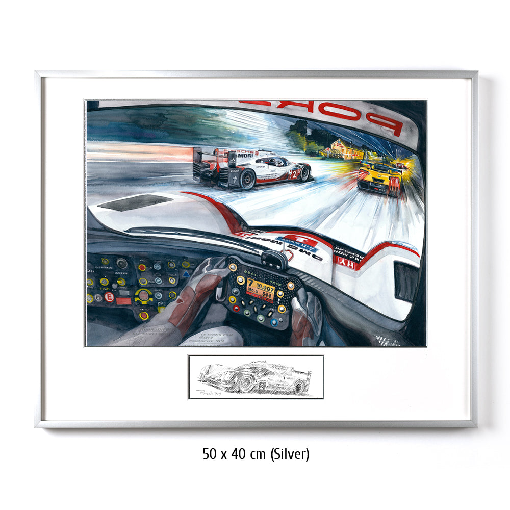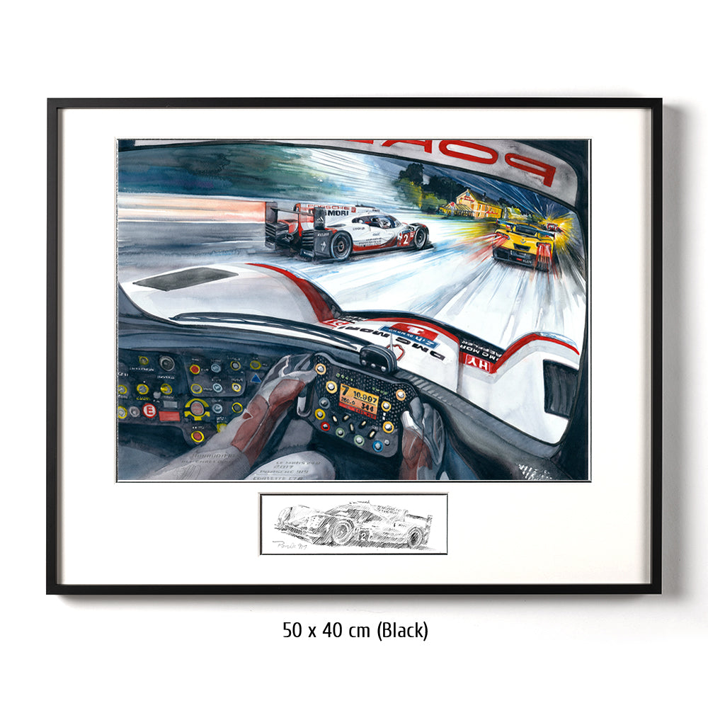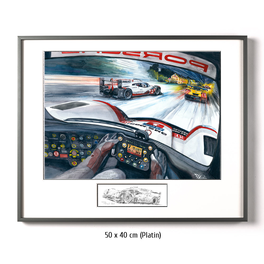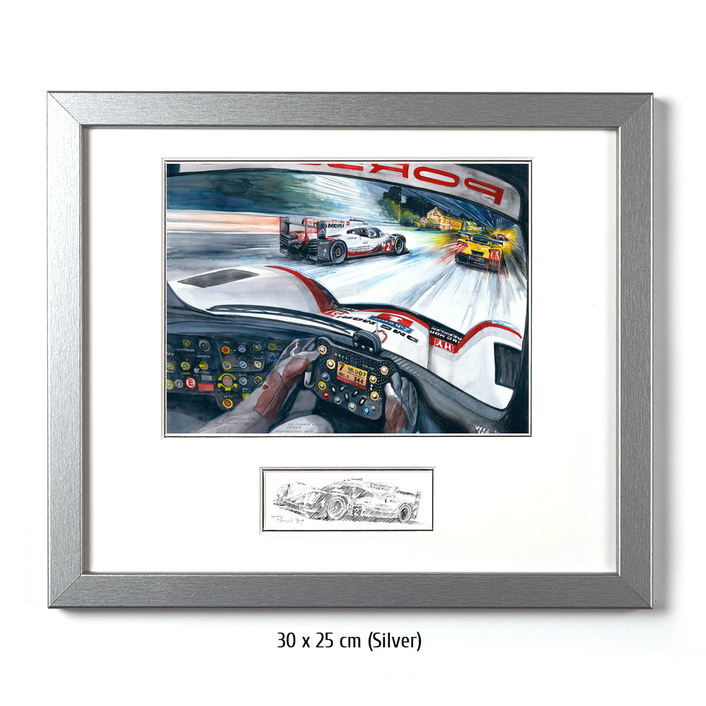 Nur bei einem 24 Stundenrennen scheint es möglich zu sein, was Timo Bernhard, Brendon Hartley und Earl Bamber mit dem Team Porsche und ihrem 919 LMP1 im Jahr 2017 leisteten: von Platz 55 auf Platz eins zu fahren. Aber der Reihe nach: Toyota ist mit einer 3:18,067 ganze drei Sekunden schneller als die Porsche. Wird es der erste Toyota-Sieg nach all den langen 30 (Leidens)-Jahren, in denen die Japaner herausragend schnelle Rennwagen an die Sarthe sendeten? Noch nicht. Die filigranen Hybrid-Fahrzeuge scheitern alle vier – zumindest temporär – an ihrer Hochtechnologie oder anderen, typischen Le Mans Schwierigkeiten. Das Glück des Porsche Trios in der Startnummer 2 war, dass ihre Hybrideinheit (Elektroantrieb an der Vorderachse) sehr früh im Rennen gewechselt wurde. Lotterer und Co. im Schwesterauto rollten machtlos auf der Hunaudières aus – in Führung liegend. Den Toyota mit der gleichen Technologie ging es nicht besser. Der Jackie-Chan-LMP2 führte das Rennen dann über mehrere Stunden, aber der 919 stürmte heran und knabberte Runde um Runde zehn Sekunden von der Führung ab. Endlich erfüllte sich der lange ersehnte Le Mans Sieg auf Porsche für Timo Bernhard.