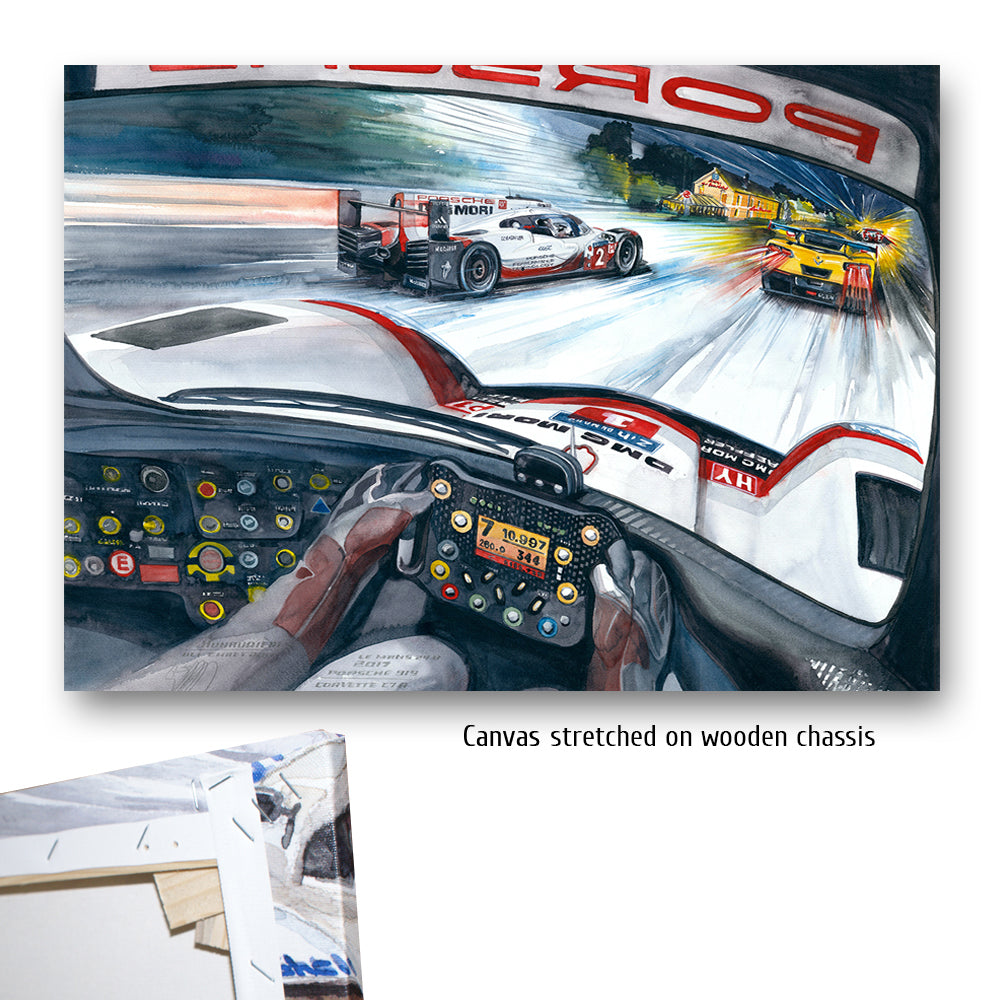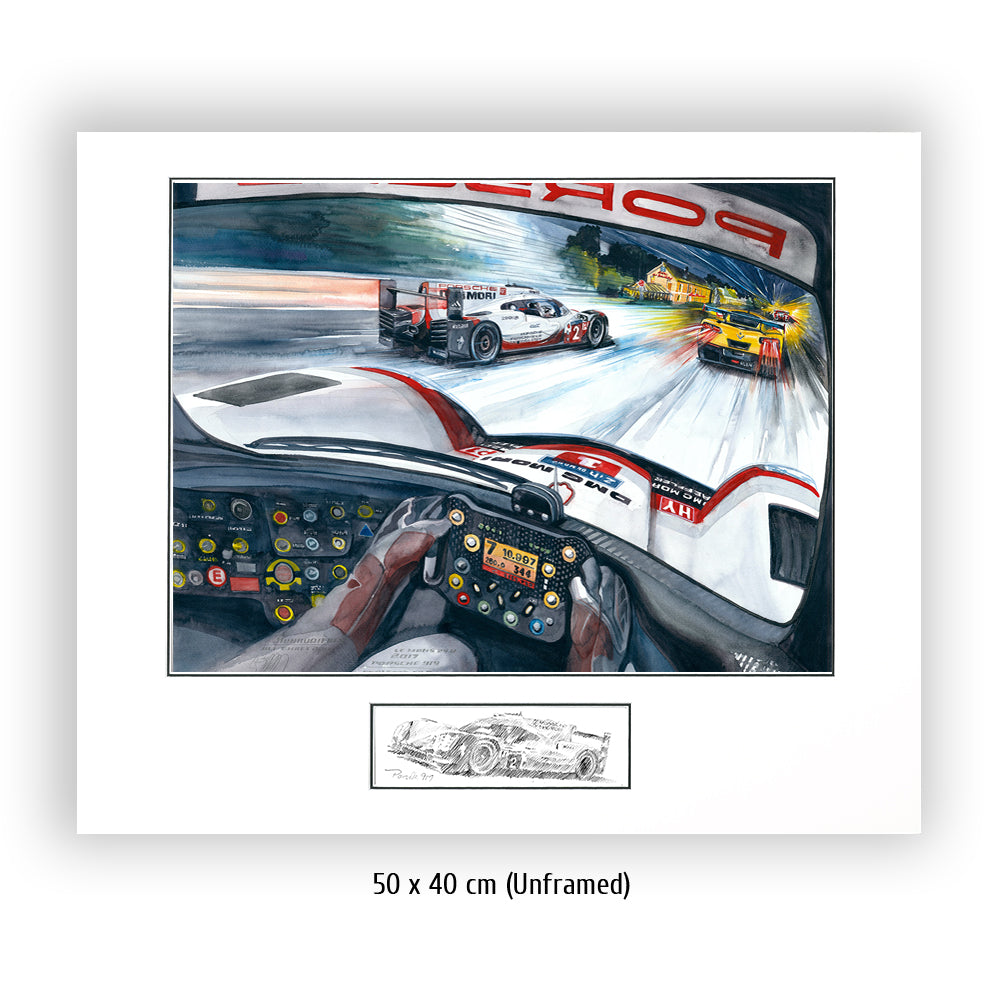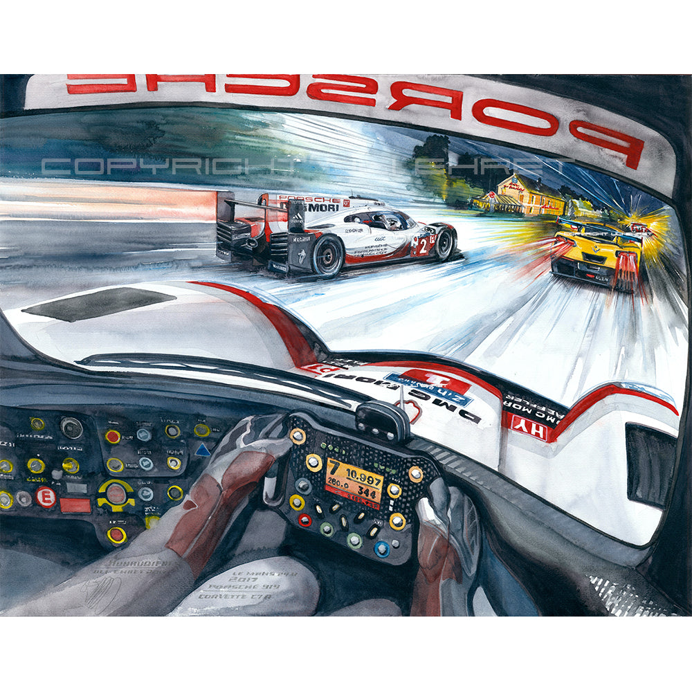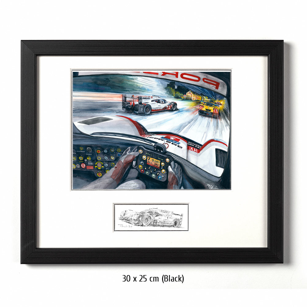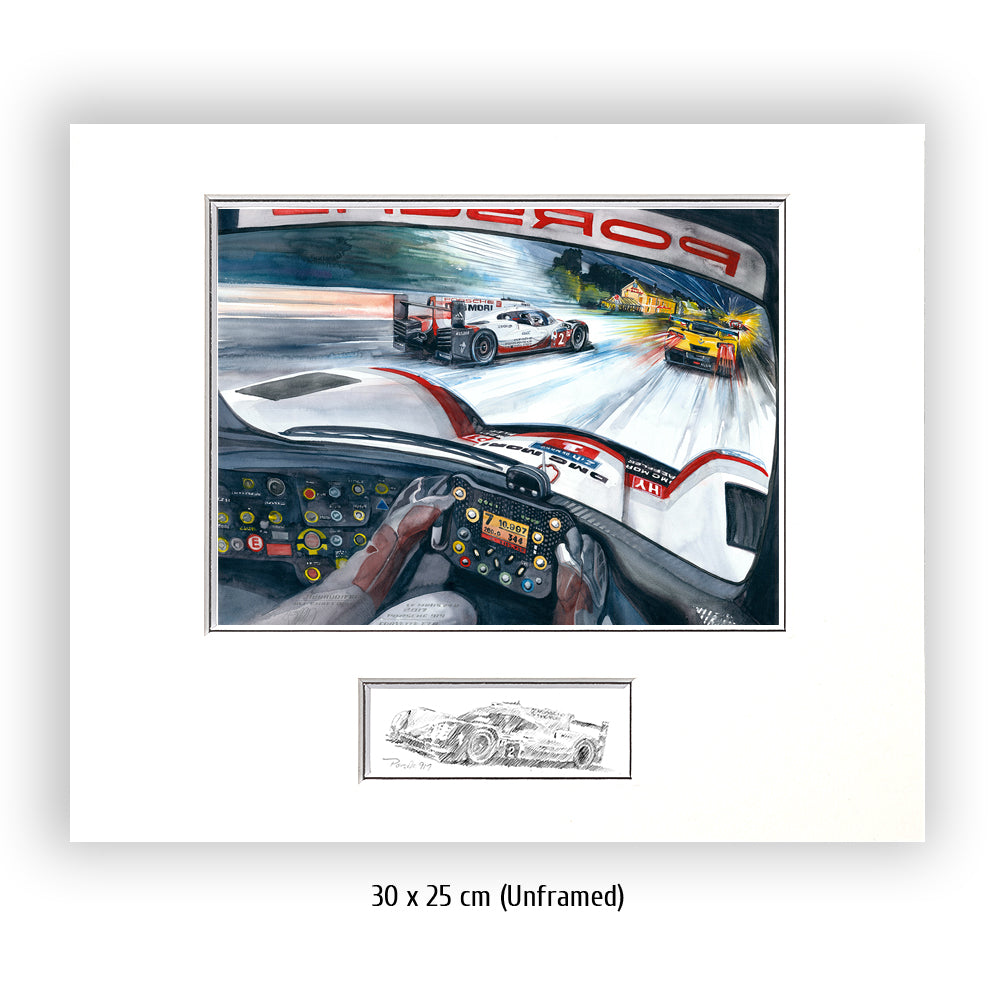 Nur bei einem 24 Stundenrennen scheint es möglich zu sein, was Timo Bernhard, Brendon Hartley und Earl Bamber mit dem Team Porsche und ihrem 919 LMP1 im Jahr 2017 leisteten: von Platz 55 auf Platz eins zu fahren. Aber der Reihe nach: Toyota ist mit einer 3:18,067 ganze drei Sekunden schneller als die Porsche. Wird es der erste Toyota-Sieg nach all den langen 30 (Leidens)-Jahren, in denen die Japaner herausragend schnelle Rennwagen an die Sarthe sendeten? Noch nicht. Die filigranen Hybrid-Fahrzeuge scheitern alle vier – zumindest temporär – an ihrer Hochtechnologie oder anderen, typischen Le Mans Schwierigkeiten. Das Glück des Porsche Trios in der Startnummer 2 war, dass ihre Hybrideinheit (Elektroantrieb an der Vorderachse) sehr früh im Rennen gewechselt wurde. Lotterer und Co. im Schwesterauto rollten machtlos auf der Hunaudières aus – in Führung liegend. Den Toyota mit der gleichen Technologie ging es nicht besser. Der Jackie-Chan-LMP2 führte das Rennen dann über mehrere Stunden, aber der 919 stürmte heran und knabberte Runde um Runde zehn Sekunden von der Führung ab. Endlich erfüllte sich der lange ersehnte Le Mans Sieg auf Porsche für Timo Bernhard.
