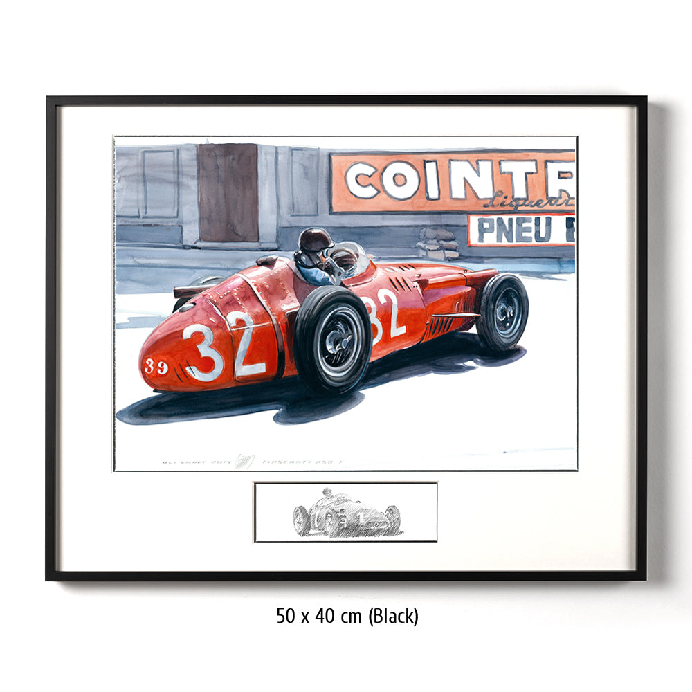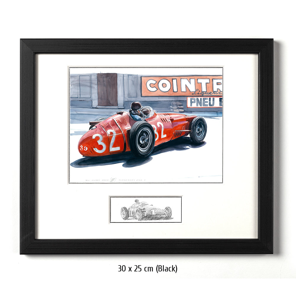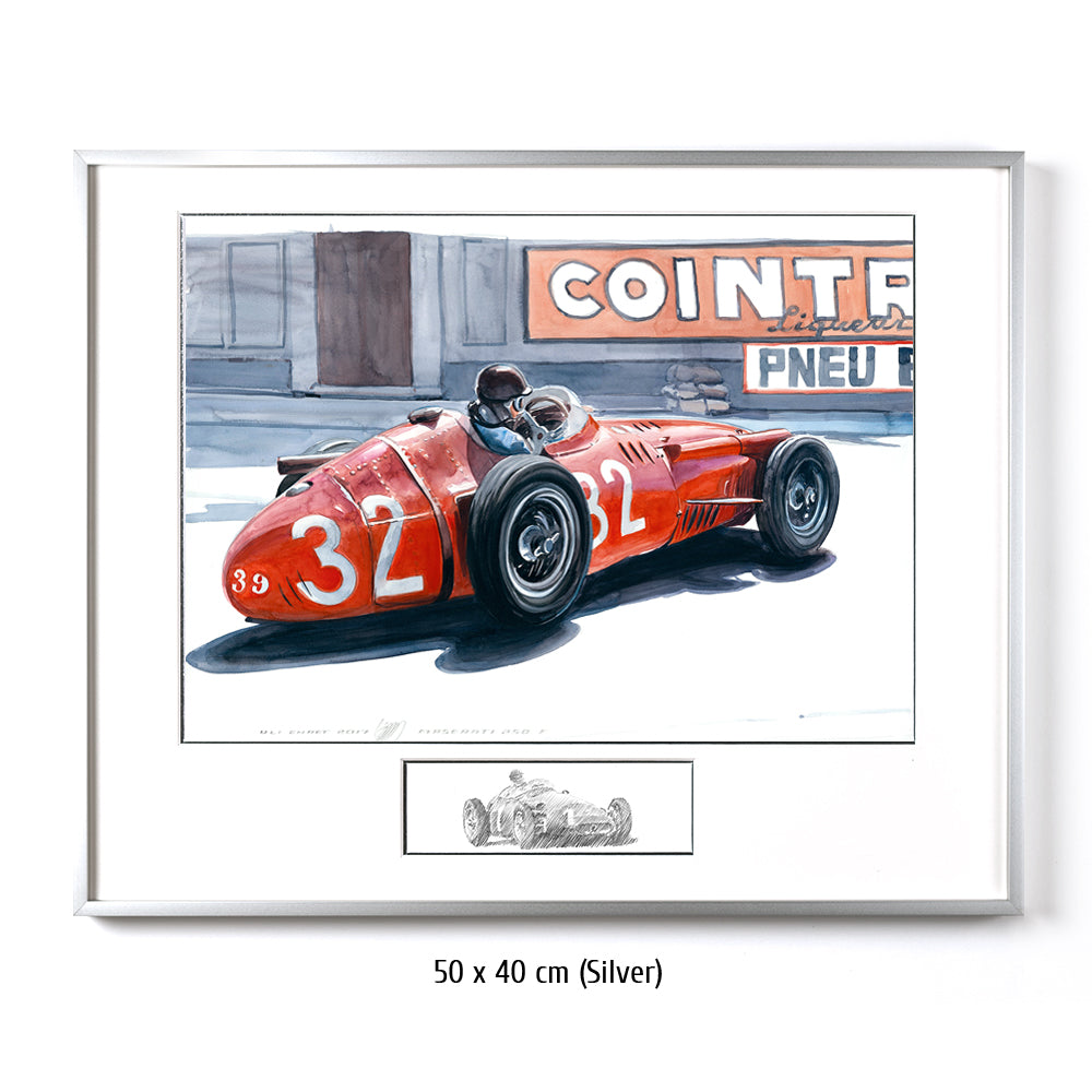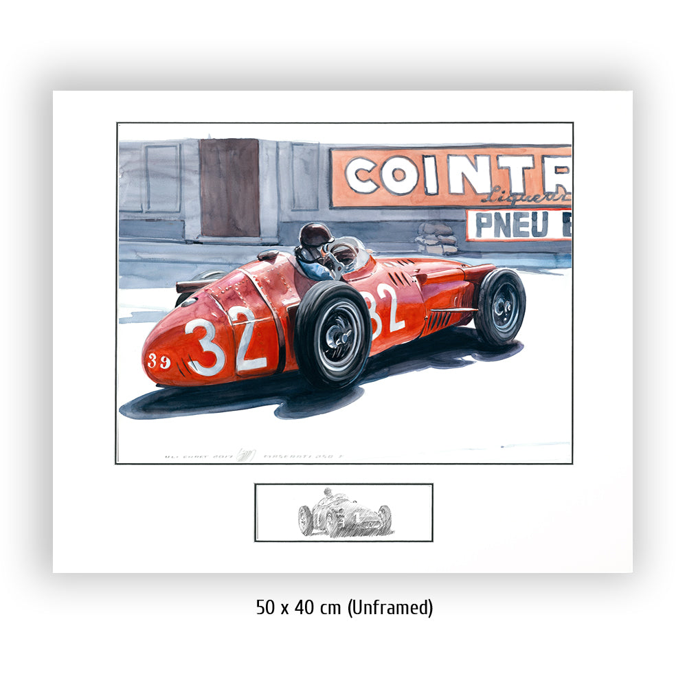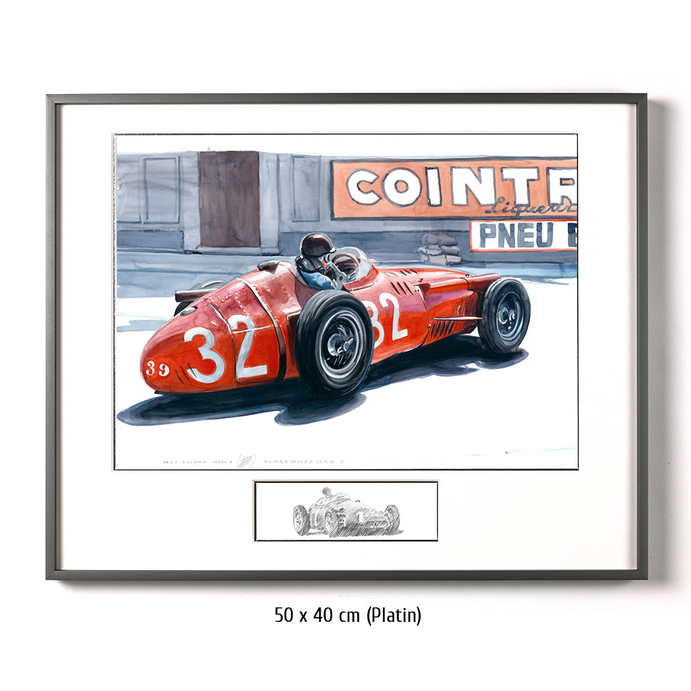 All das, was einen Monaco Grand Prix ausmacht, wurde 1957 dargeboten. Vier Maserati gegen vier Ferrari – alle in besten Händen. Juan Manuel Fangio – auf der Höhe seiner Kunst und bereits zweifacher Weltmeister, am Steuer des 250F, ebenso wie seine Teamkollegen Masten Gregory, Giorgio Scarlatti, Carlos Mendeteguy, Harry Schell und Horace Gould. In den Ferrari 801 sitzen die anderen Legenden: Maurice Trintignant, Wolfgang von Trips, Peter Collins und im Ferrari-Lancia D 50 Mike Hawthorn. Dazu ein moderner Cooper Climax mit Heckmotor und Jack Brabham am Volant, sowie ein traditionell geformter Vanwall mit Stirling Moss und Tony Brooks am Steuer. Moss überholt Fangio nach dem Start. Collins schnappt sich den Weltmeister kurz danach. Doch Moss überschätzt sich, verursacht einen kapitalen Massenunfall, dem nur Fangio entrinnt, wie durch ein Wunder meisterlich und auch wie von Zauberhand geführt schlüpft er durch die kollidierten Schnellstarter – nur um das Rennen über die restlichen 95 Runden weltmeisterlich zu kontrollieren – auch wenn gegen Ende der zweite Gang „fehlt“. „Um als Erster anzukommen, musst Du erst einmal ankommen“.