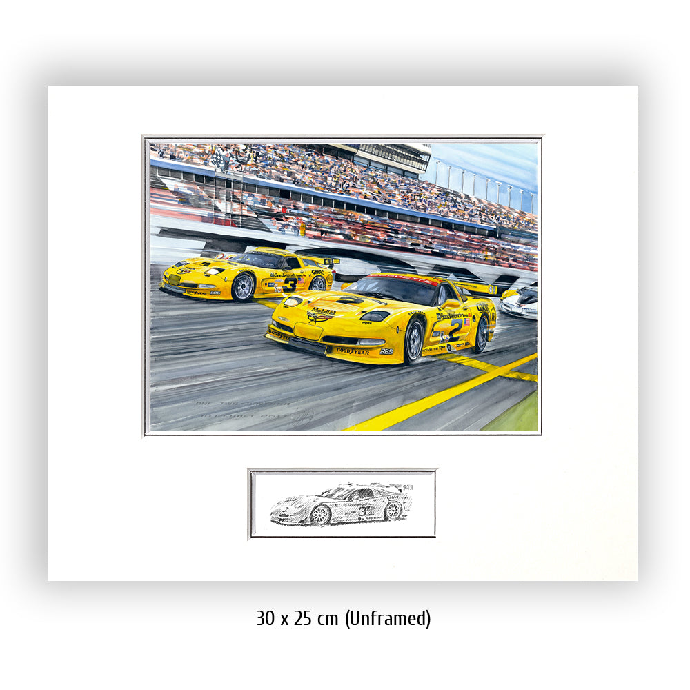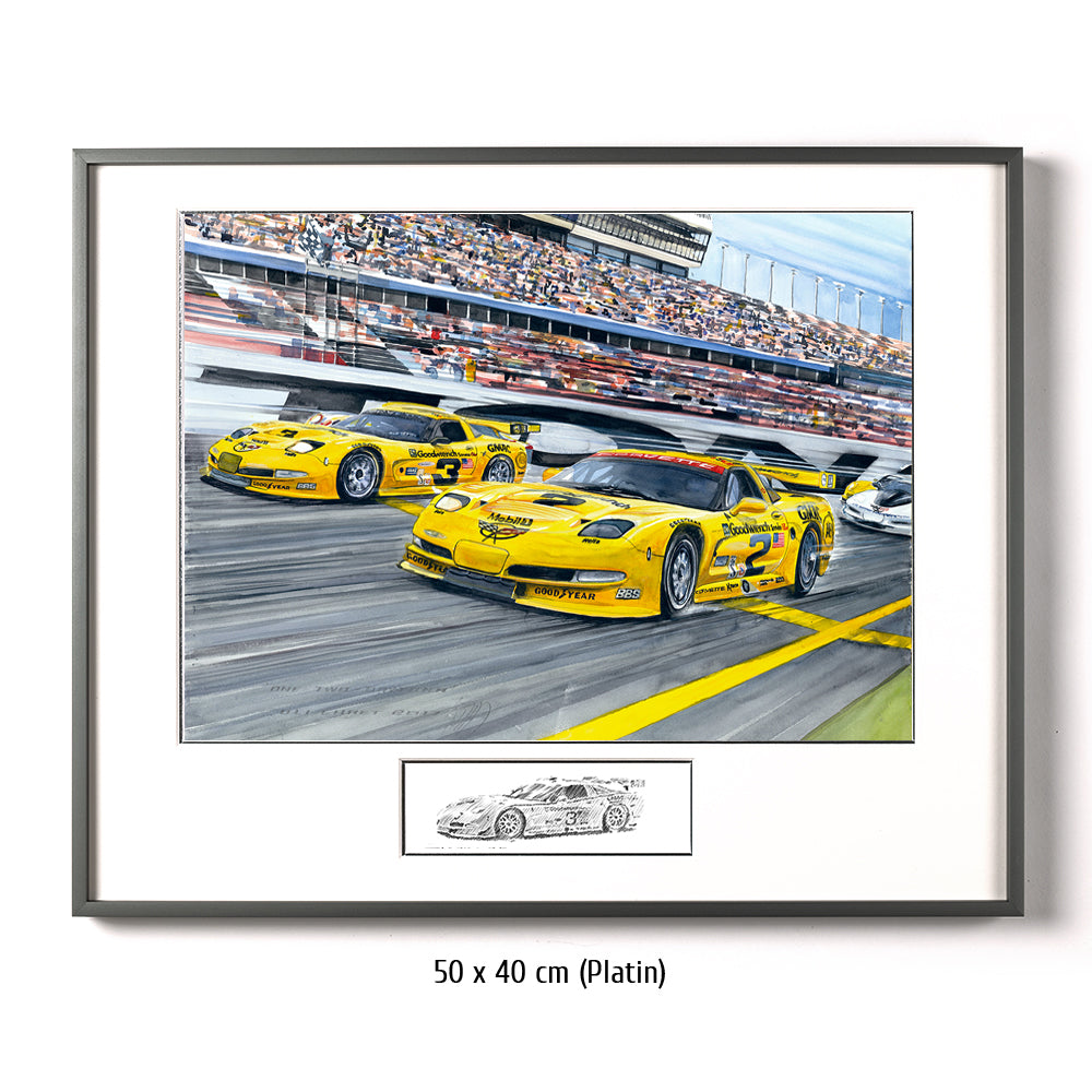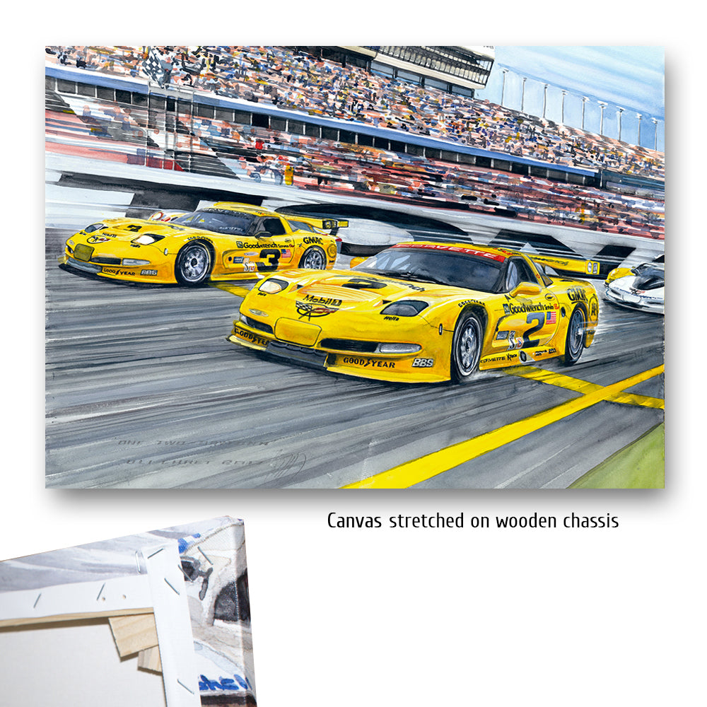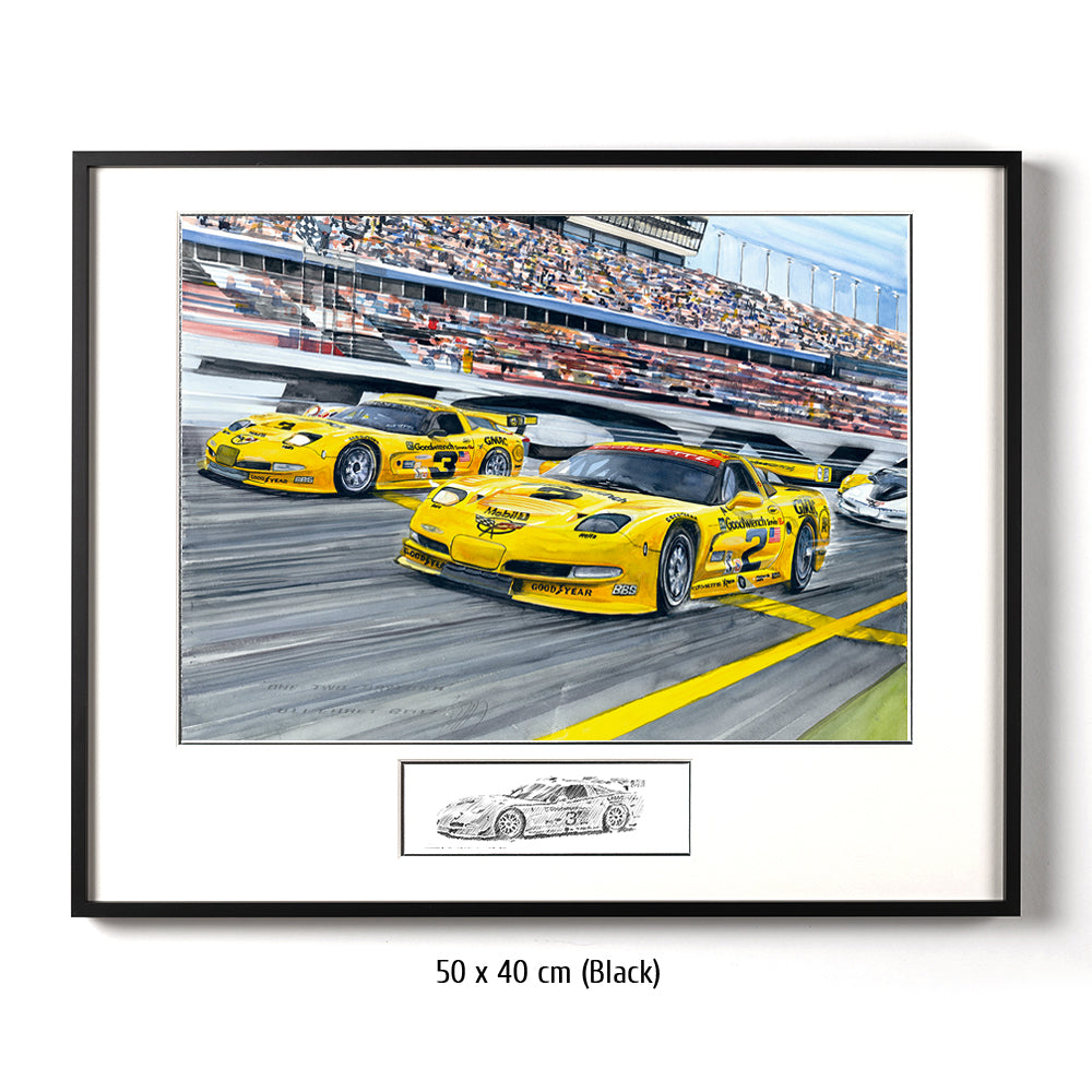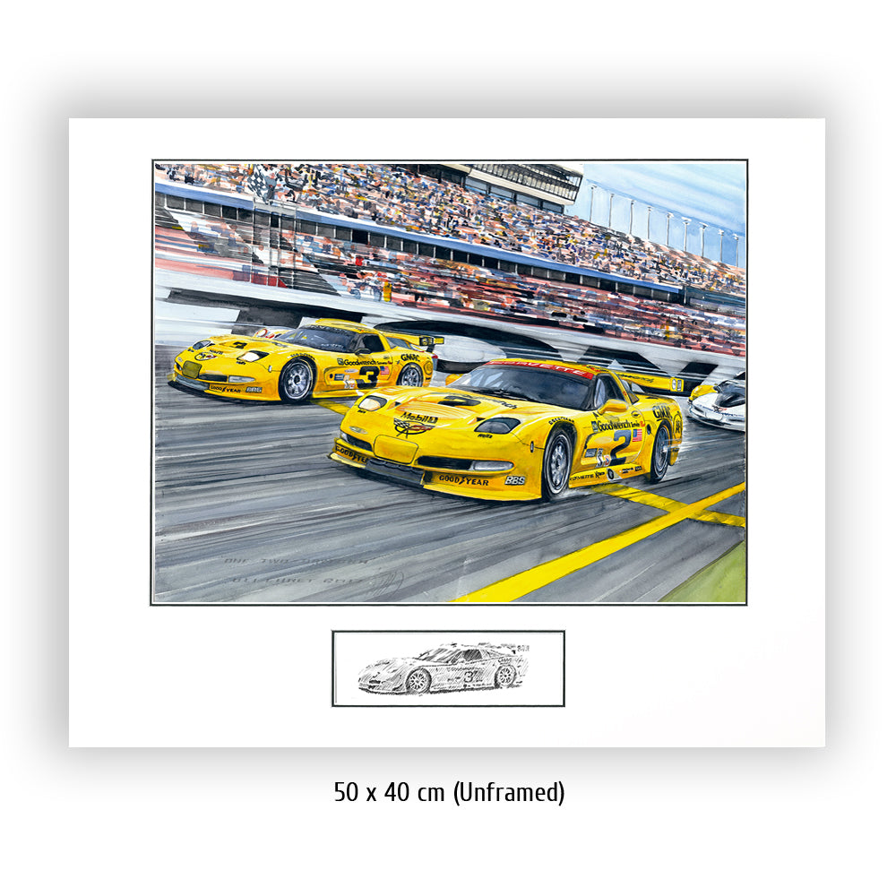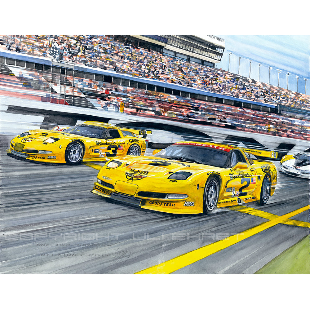 Der Gesamtsieg bei den 24 Stunden von Daytona 2001 war nicht vorherzusehen für Ron Fellows, Chris Kneifel, Franck Fréon und Johnnny o´Connell auf ihrer C5.R Corvette mit der Startnummer 2. Die offenen Prototypen beherrschten leistungsgemäß die erste Rennhälfte. In die Nacht hinein waren aber nur drei Protoytpen in der Führung verblieben, gefolgt von den beiden Werks-Corvettes und einem Marcos in einem spannenden Rennduell. Den Marcos wirft eine defekte Servo-Pumpe aus dem Rennen, der Dyson haucht zwei Stunden vor Rennende sein Leben mit einer weißen Öl-Rauchfahne aus – liegt aber mit 26 Runden in Führung – trotz Ausscheidens. Die Corvette #2 holt den Vorsprung auf und fährt als Sieger über die Ziellinie, Seite an Seite mit dem Schwesterfahrzeug #3 (Pilgrim, Dale Earnhardt, Dale Earnhardt Jr., Kelly Collins) welches aber lediglich auf den vierten Platz kommt.