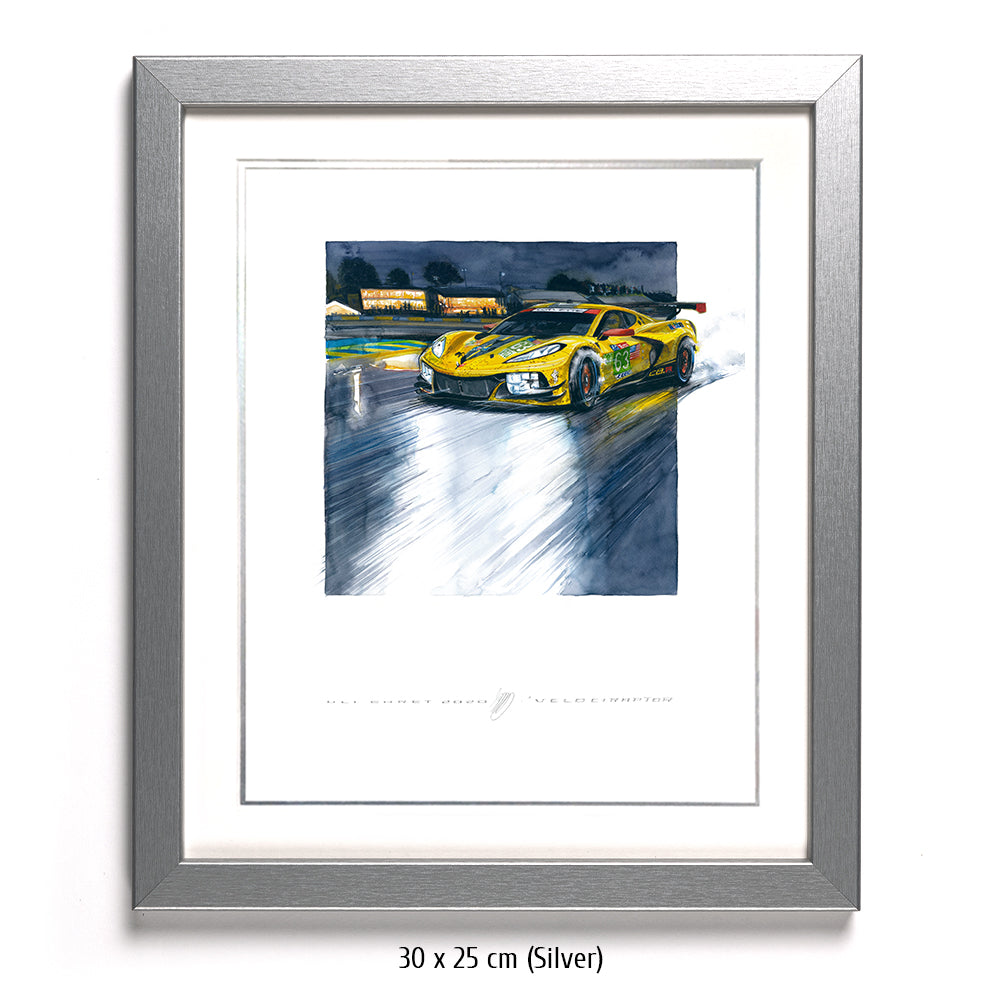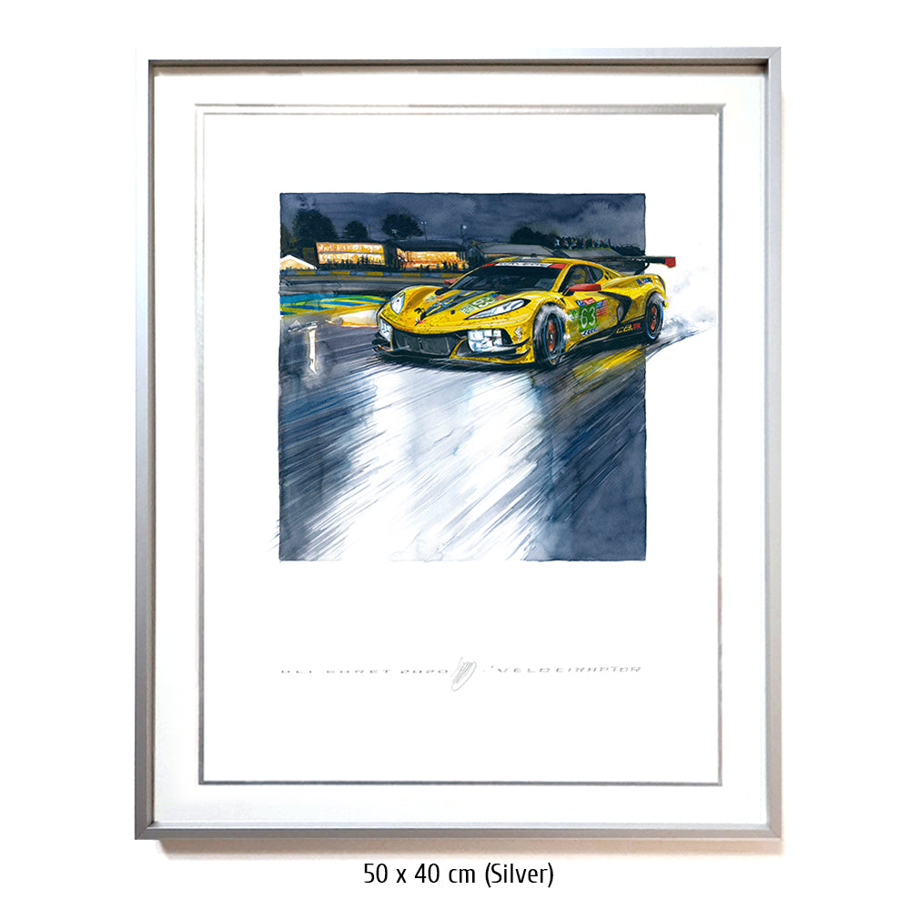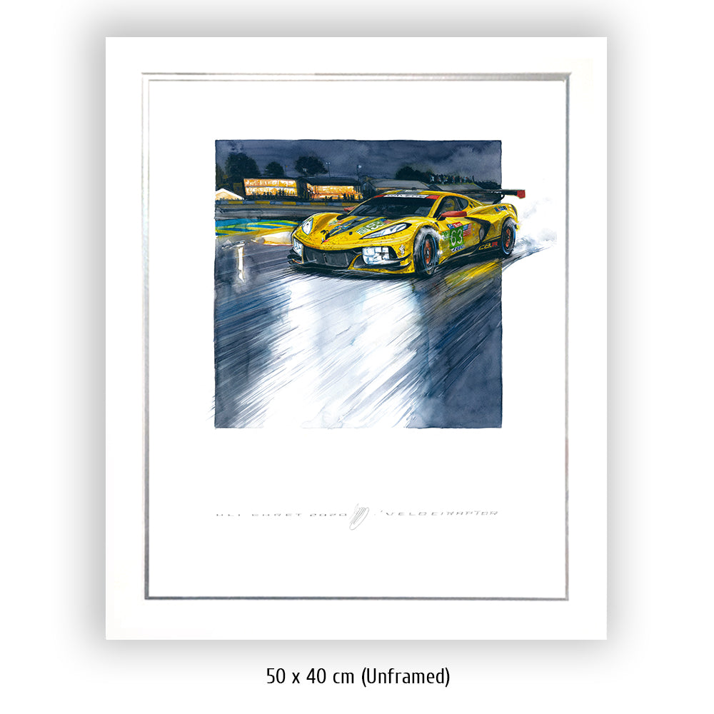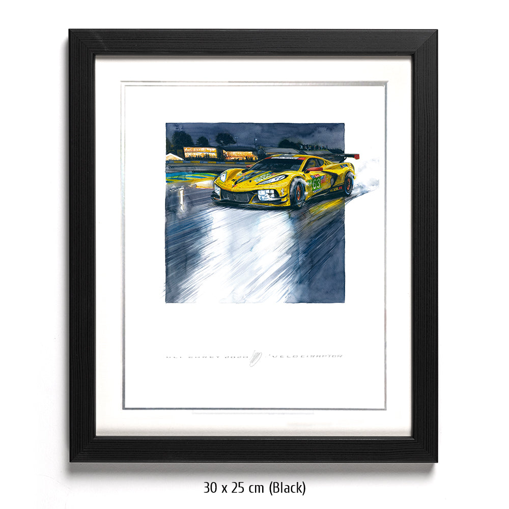 Die Corvette C8.R brach erstmals mit allen Traditionen der bisherigen Corvette-Bauweise. Ein perfekter Mittelmotor-Sportwagen sollte die GTE Welt erobern. Der besseren Gewichtsverteilung zuliebe verzichtete Corvette auf die Bauweise von über 50 Jahren, der Corvette C1, C2, C3, C4, C5, C6 und C7, alle mit Frontmotoren, und das C8.R-Fahrzeug ähnelte als Prototyp ohne den gelben Lack mehr einem Ferrari, als jeglicher Tradition seiner Vorgänger. 2020 durch Covid ausgebremst, kam das Debüt des Renners aus Detroit erst 2021 nach Le Mans. Im Qualifying überzeugte die Startnummer 64 mit einer extrem schnellen 3:47:093 min, knapp hinter dem zweitplatzierten AF Corse Ferrari mit 3:47:063 min und dem überragend schnellen Hub Auto Racing Porsche GTE der eine 3:46:88 im zweiten Qualifying fuhr und somit den ersten Startplatz ergatterte. Im Rennen der 24 Stunden war es dann aber die #63, die überzeugte. Rundengleich fuhren sie hinter dem AF Corse Ferrari #51 als Sieger, knapp auf den zweiten Platz zum gelungenen Debüt an der Sarthe.