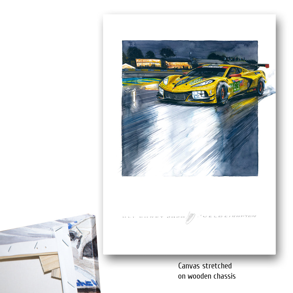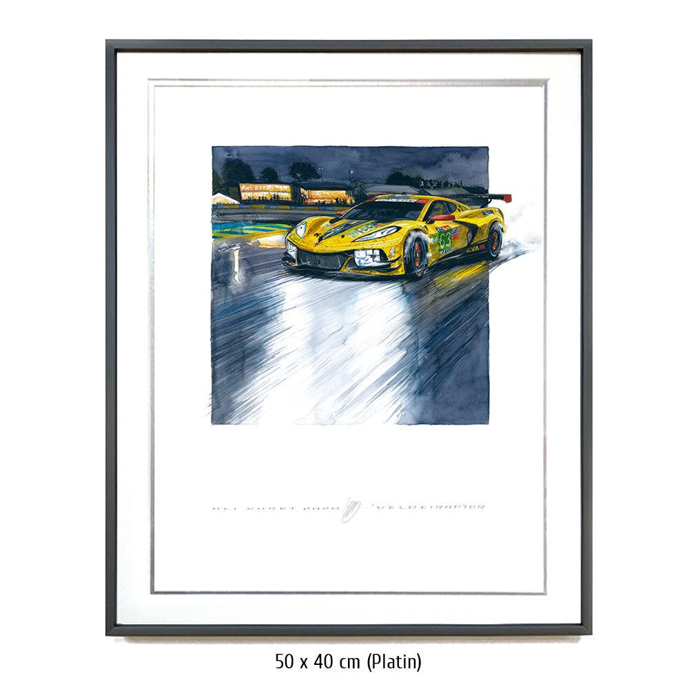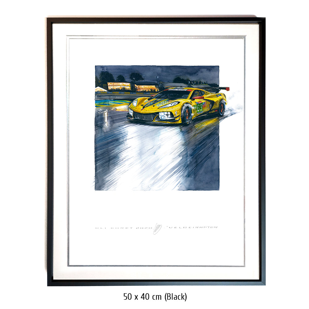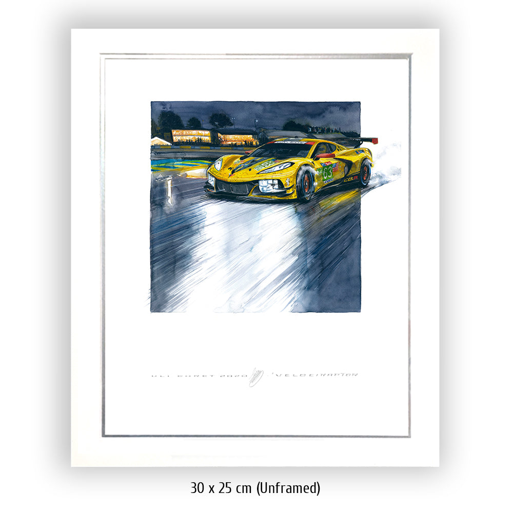 Die Corvette C8.R brach erstmals mit allen Traditionen der bisherigen Corvette-Bauweise. Ein perfekter Mittelmotor-Sportwagen sollte die GTE Welt erobern. Der besseren Gewichtsverteilung zuliebe verzichtete Corvette auf die Bauweise von über 50 Jahren, der Corvette C1, C2, C3, C4, C5, C6 und C7, alle mit Frontmotoren, und das C8.R-Fahrzeug ähnelte als Prototyp ohne den gelben Lack mehr einem Ferrari, als jeglicher Tradition seiner Vorgänger. 2020 durch Covid ausgebremst, kam das Debüt des Renners aus Detroit erst 2021 nach Le Mans. Im Qualifying überzeugte die Startnummer 64 mit einer extrem schnellen 3:47:093 min, knapp hinter dem zweitplatzierten AF Corse Ferrari mit 3:47:063 min und dem überragend schnellen Hub Auto Racing Porsche GTE der eine 3:46:88 im zweiten Qualifying fuhr und somit den ersten Startplatz ergatterte. Im Rennen der 24 Stunden war es dann aber die #63, die überzeugte. Rundengleich fuhren sie hinter dem AF Corse Ferrari #51 als Sieger, knapp auf den zweiten Platz zum gelungenen Debüt an der Sarthe.