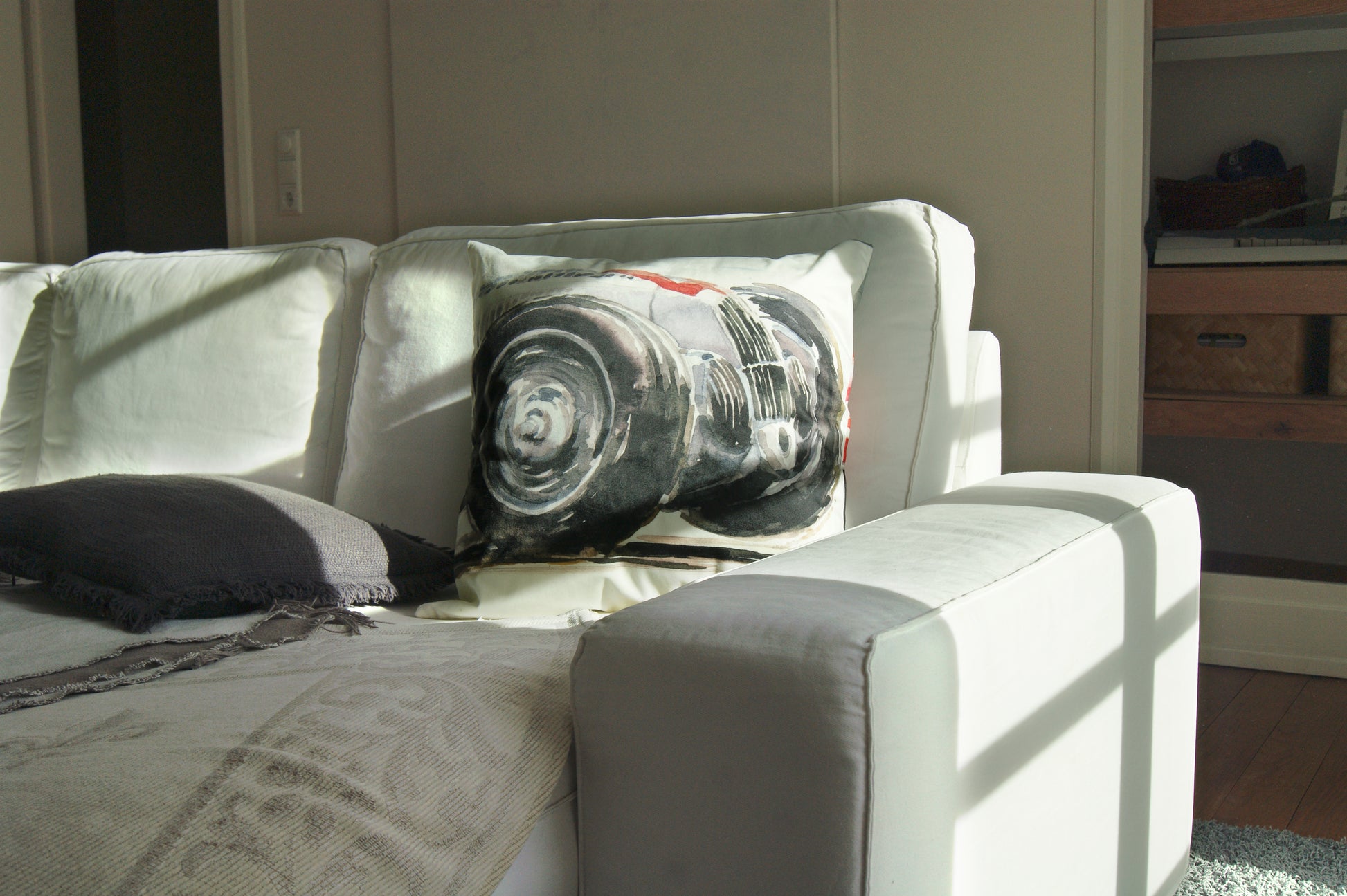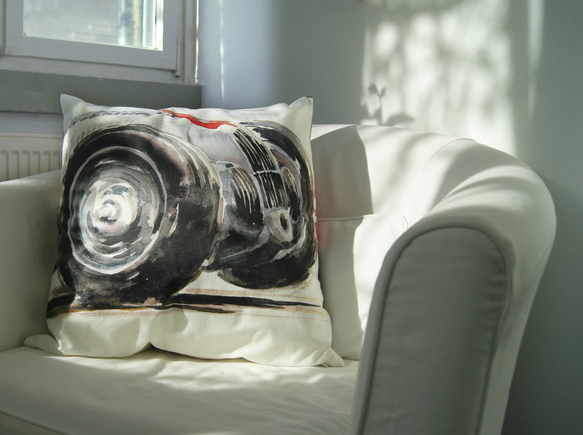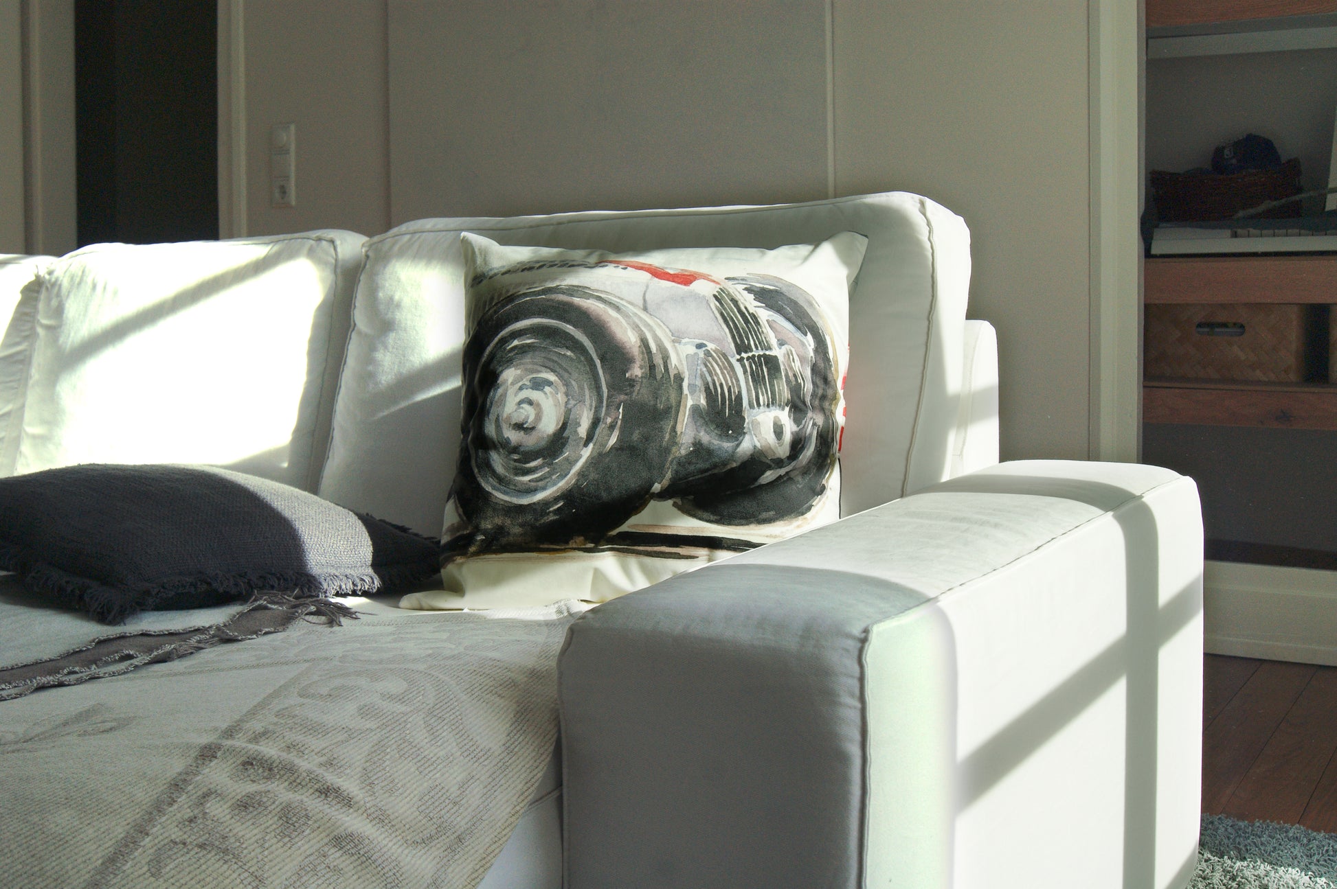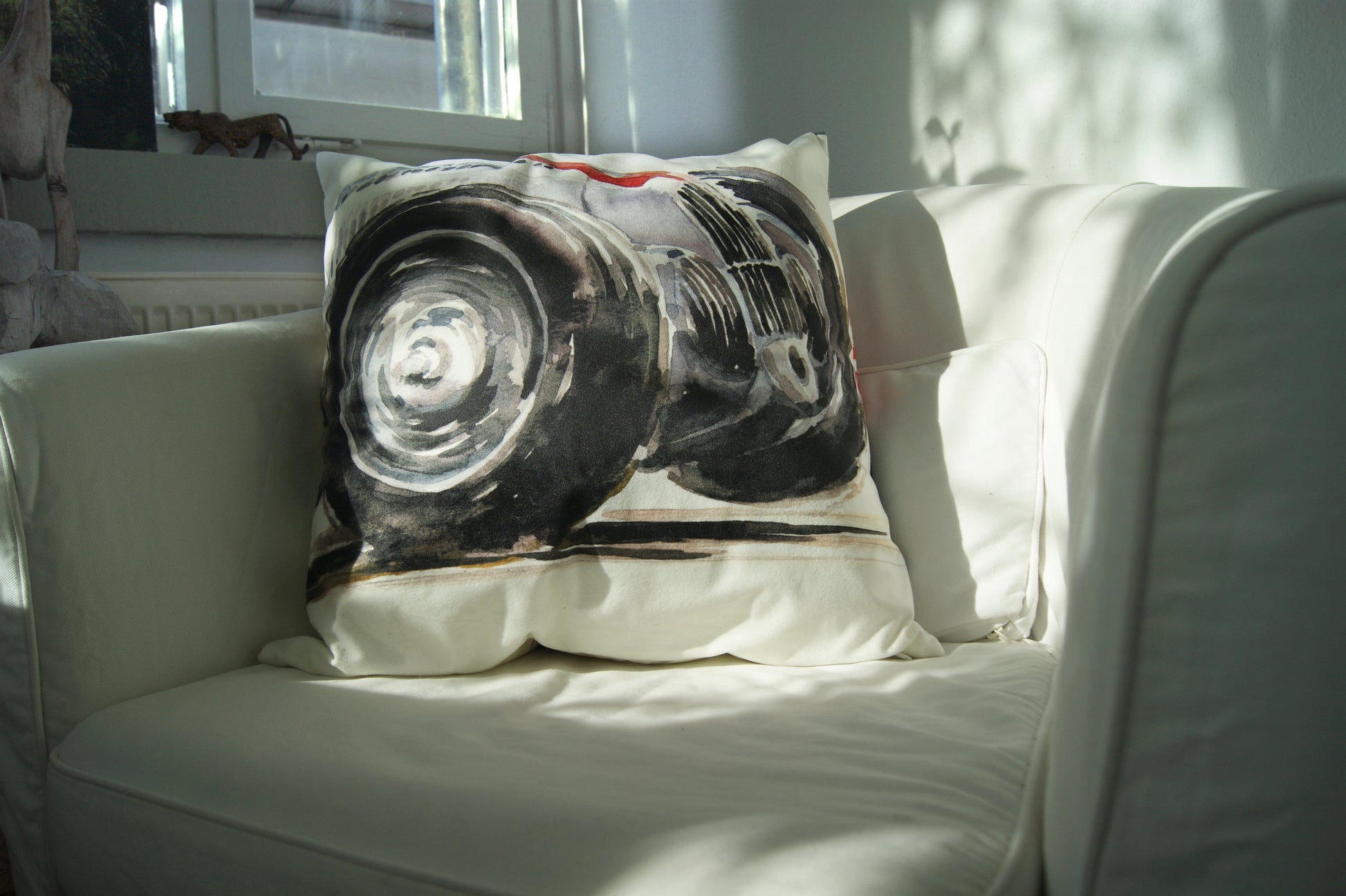 Hochwertiges Baumwollkissen mit beidseitig unterschiedlicher Gestaltung.