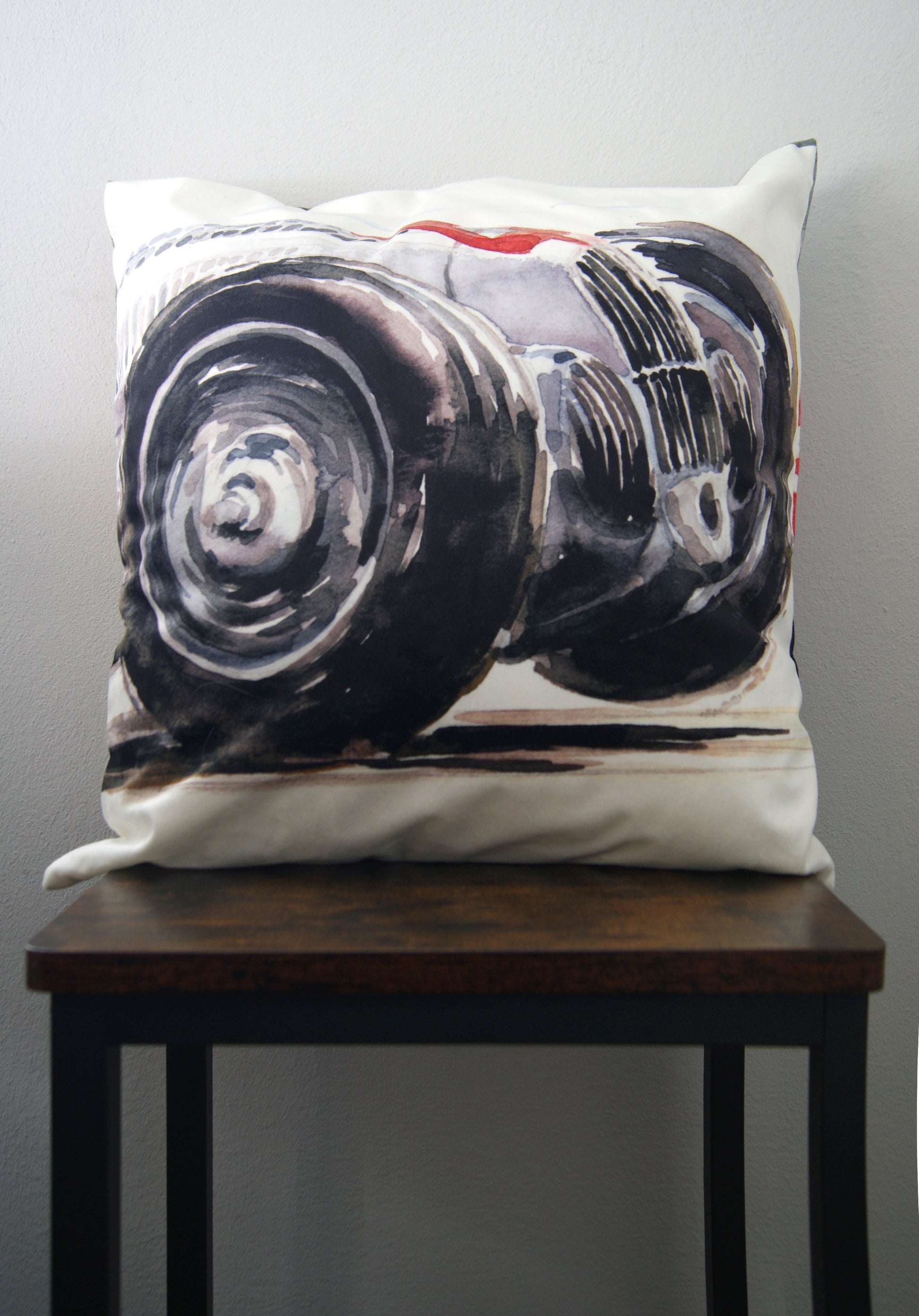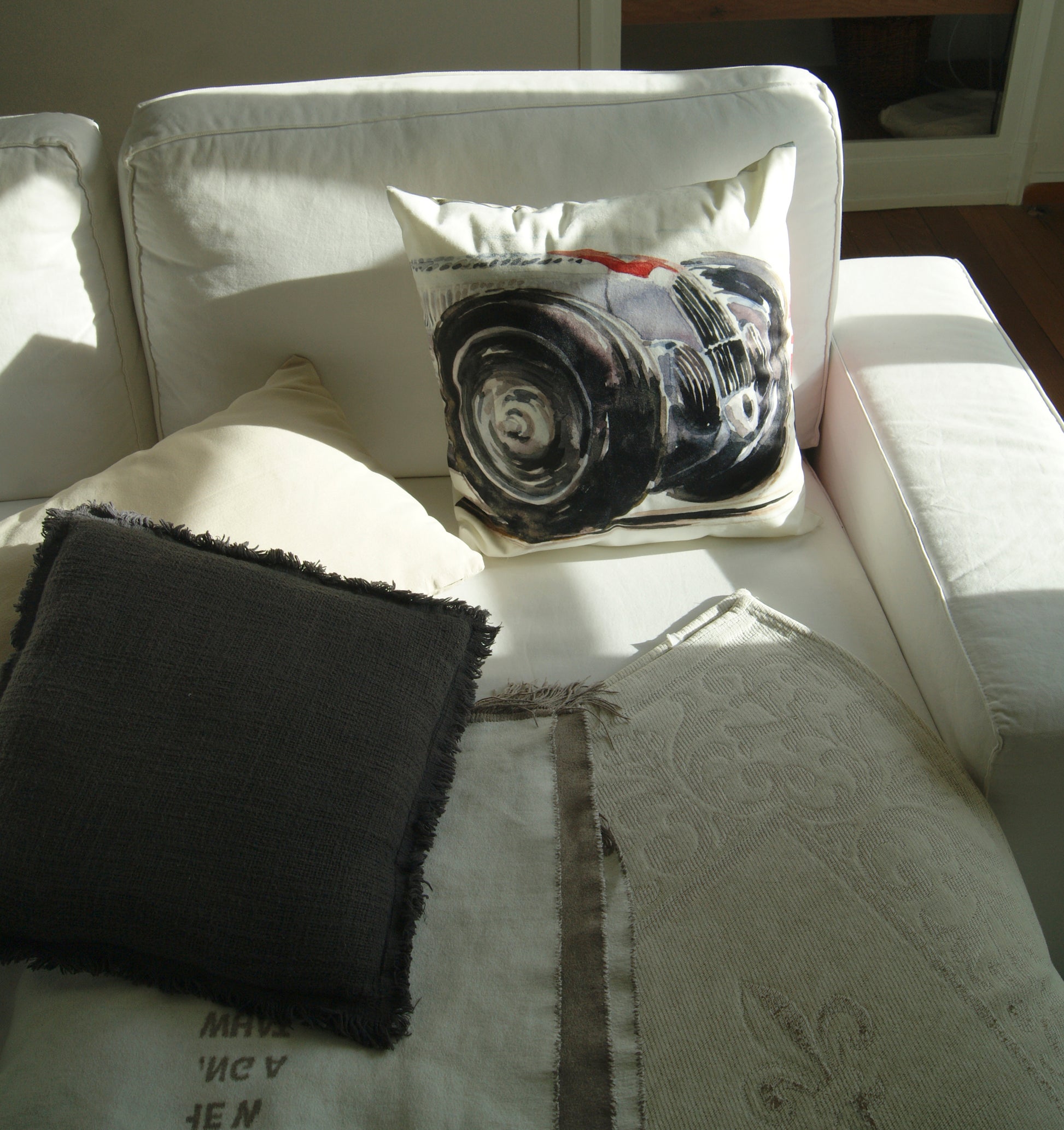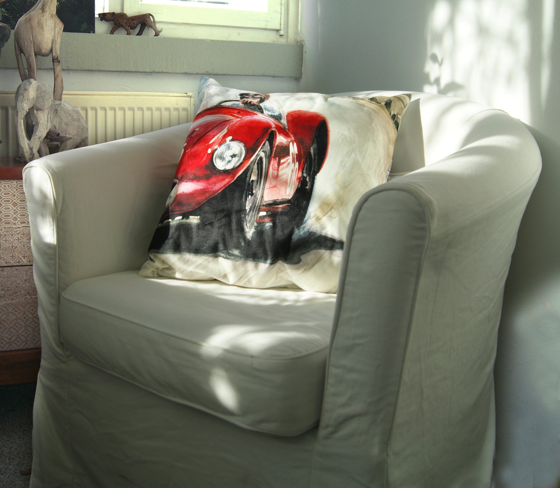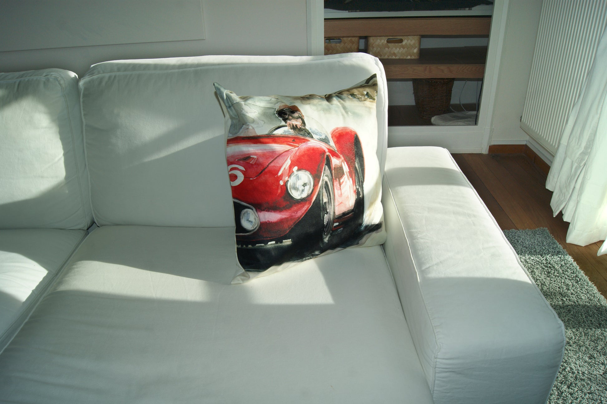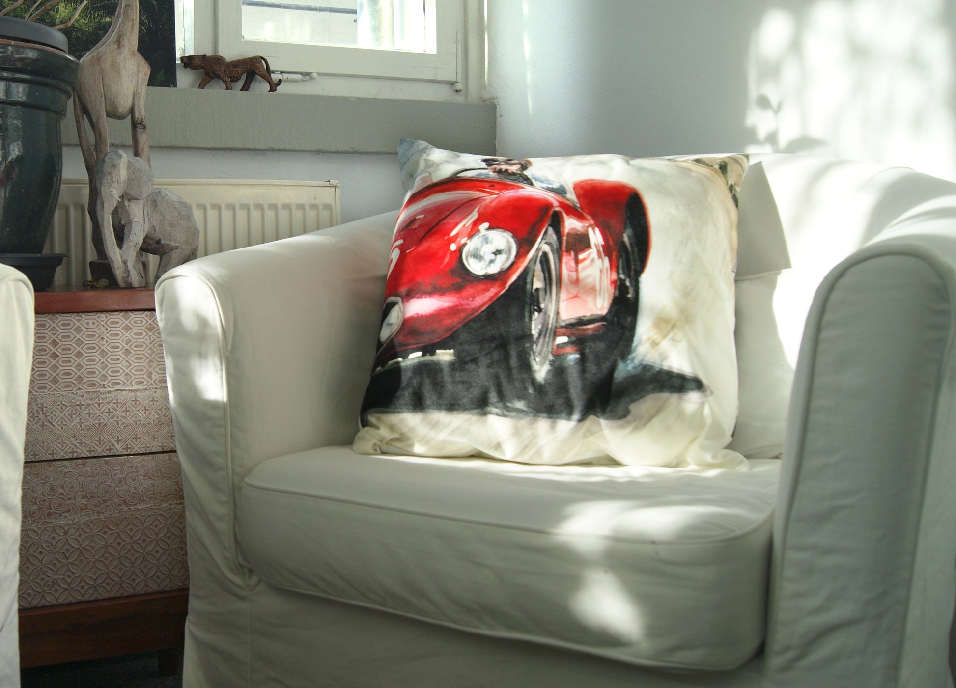 Hochwertiges Baumwollkissen mit beidseitig unterschiedlicher Gestaltung.
