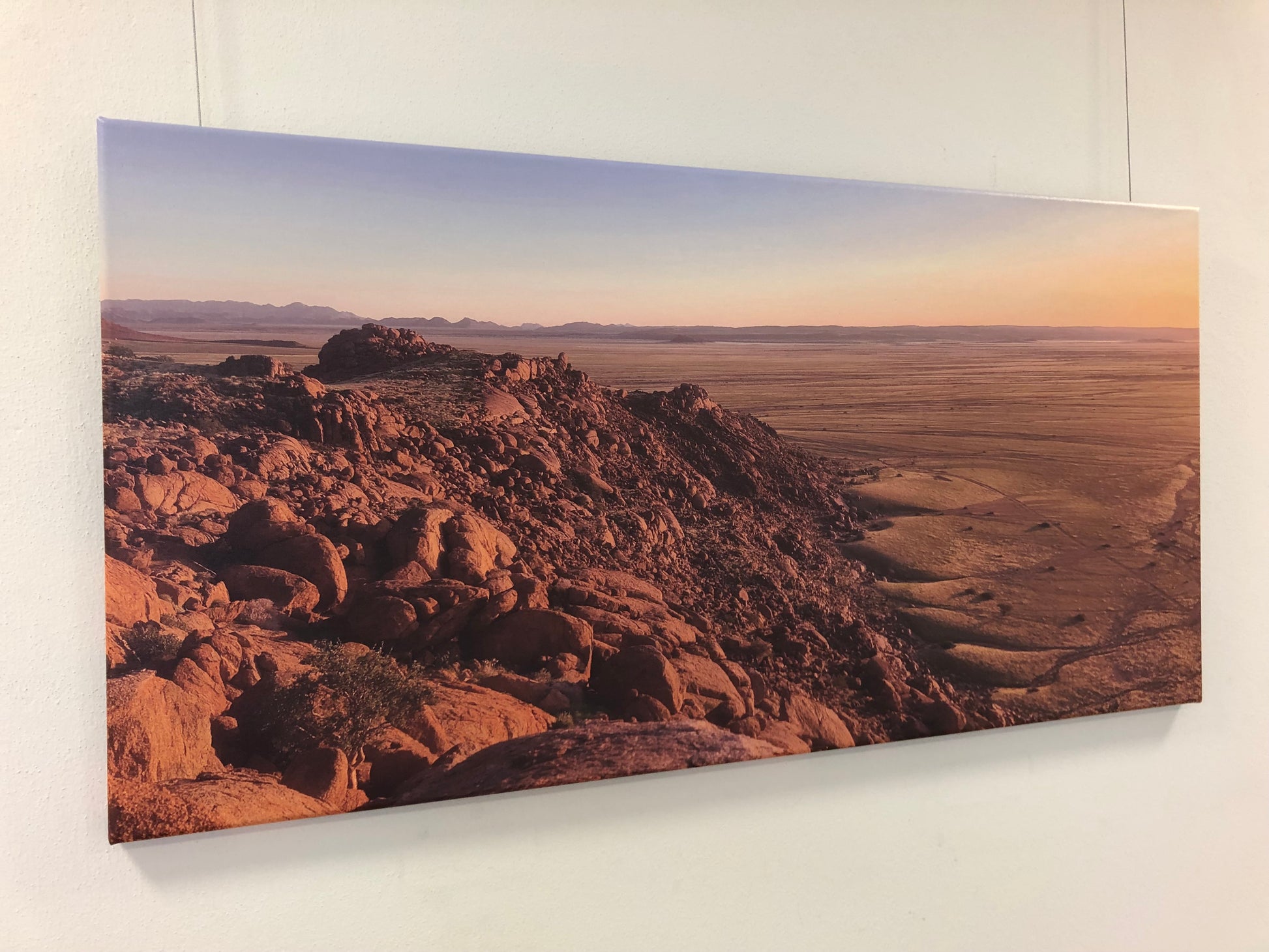 Die Naukluft-Region liegt im Landesinneren von Namibia - etwa gleich weit entfernt von Windhoek und Svakopmund. Das berühmte Sussusvlei-Tal ist etwa 50 Kilometer entfernt. Die Naukluft-Berge verzaubern den Betrachter durch ihre vielen verschiedenen Gesteinsformationen. Im Februar 2022 war die Hochebene ergrünt. Regenfälle ließen es aufblühen und der Duft der abertausend Blütenköpfe lag süß über der Region. Die Aufnahme ist vom Berg oberhalb der Naukluft-Lodge, nahe der Soft-Adventure Lodge aufgenommen. Ein Wüsten-Paradies.