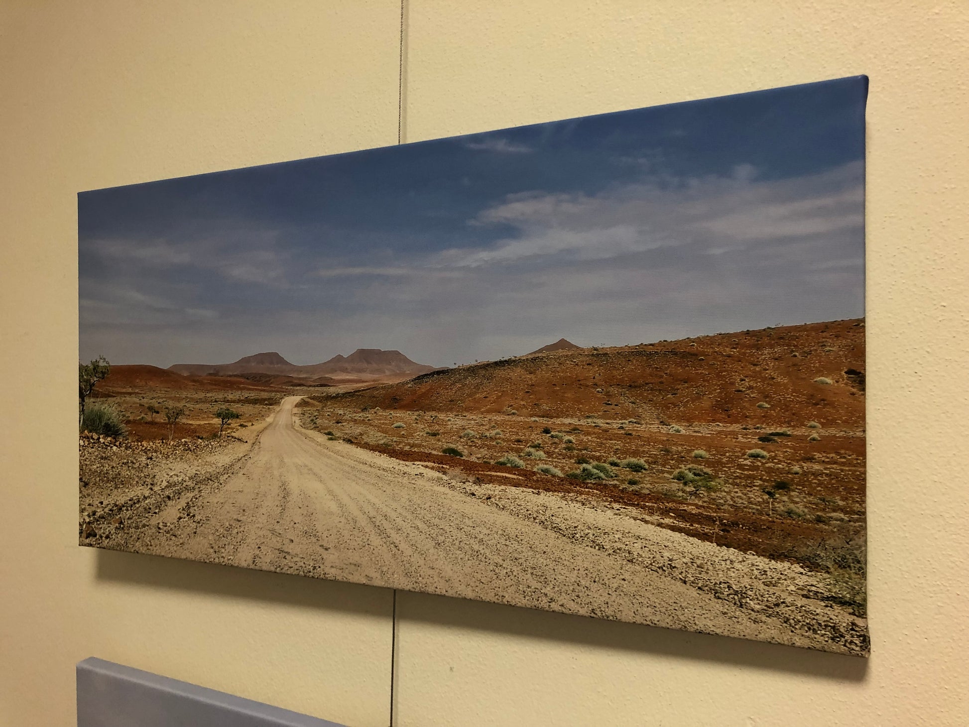 Diese Schotterpiste führt durch das Damaraland in Namibia. Es ist eine der wenigen Landstraßen im "Reservat" der Damara. Den im Süden Afrikas lebenden Ureinwohner wurde das Damaraland als Reservat nach dem Ende der Apartheid angeboten. Fährt man quer hindurch und besucht Orte wie Twyffelfontein, so sind alle Straßen wie diese. Wenn es geregnet hat, dann sind zahlreiche kleine Bäche oder auch größere Flüsse teilweise tagelang unüberquerbar. Brücken gibt es nicht. Das Damaraland liegt im Norden Namibias, zwischen der Etosha Pfanne und der Skelettküste.